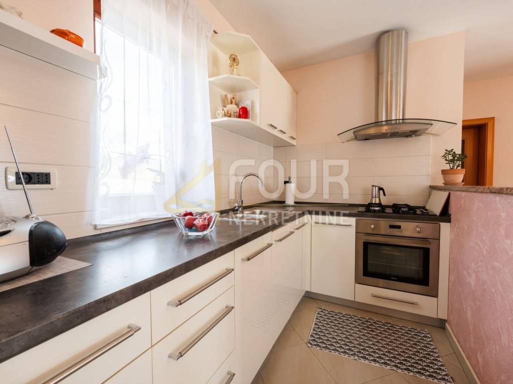 On the first floor there is a spacious apartment with three bedrooms, a living room, a kitchen, a dining room, two bathrooms, a storage room, a balcony and a terrace with a beautiful view of the Kvarner Bay.