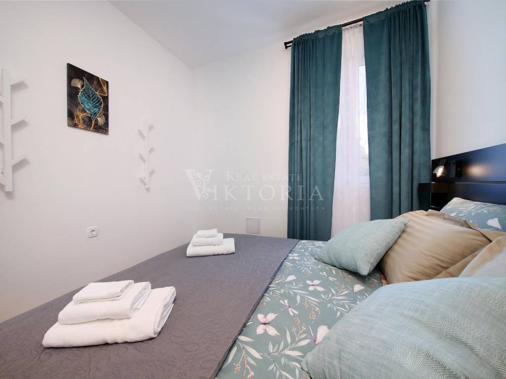 Prekrasan novouređeni stan sveukupne stambene površine 60m2, sastoji se od dvije spavaće sobe, kupaone, hodnika, dnevnog boravka i kuhinje s blagovaonom u otvorenom konceptu. Nalazi se u objektu sa samo 6 stanova. Kompletno uređen i opremljen, kao takav se iznajmljuje. Klima uređaji u svim prostorijama. Poželjan dugoročni najam. Za više info na raspolaganju Vam stoji Viktoria 0953990004.