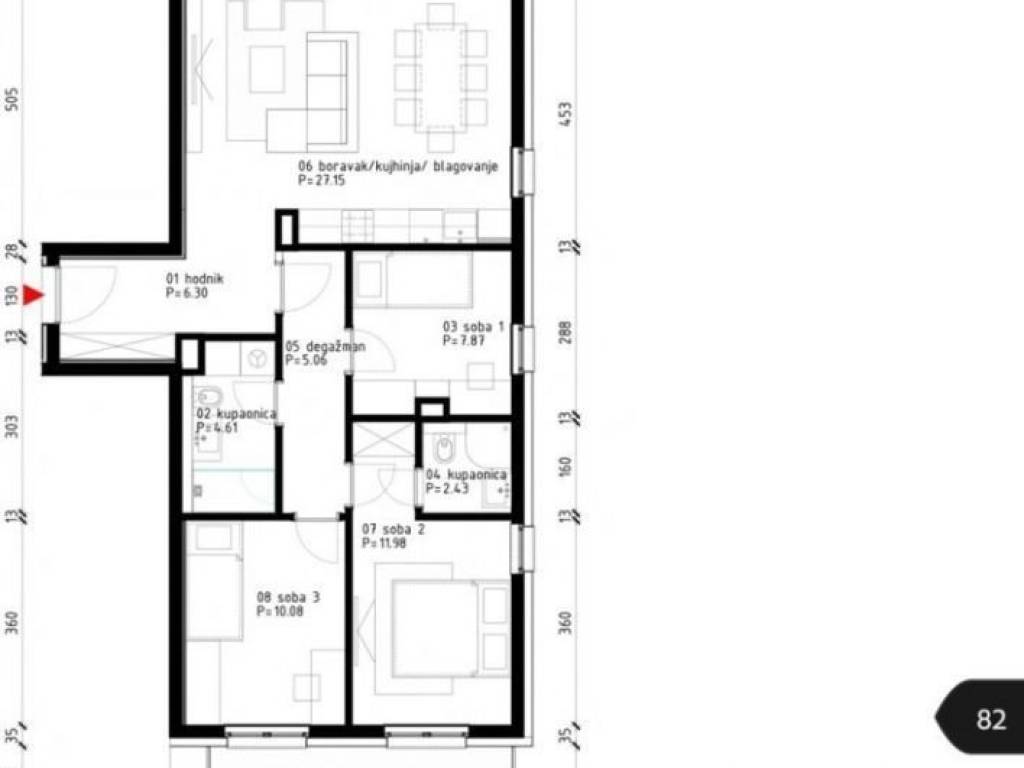We offer a modern and high-quality apartment in a new building in Poreč. Located on the second floor, the apartment boasts an impressive size of 85m2.The living space consists of an entrance hall, bathroom and three bedrooms, one of which has an en-suite bathroom. The kitchen and living room complete the interior. Access to a beautifully covered terrace is provided through large glass walls.The apartment is equipped with air conditioning for heating and cooling, while additional heat can be provided by underfloor heating with a heat pump. Electric shutters and mosquito nets are installed on all windows for added comfort. In addition to the apartment, you will also have an additional storage room and a private garage parking space.Construction is scheduled to be completed by September 1, 2025.