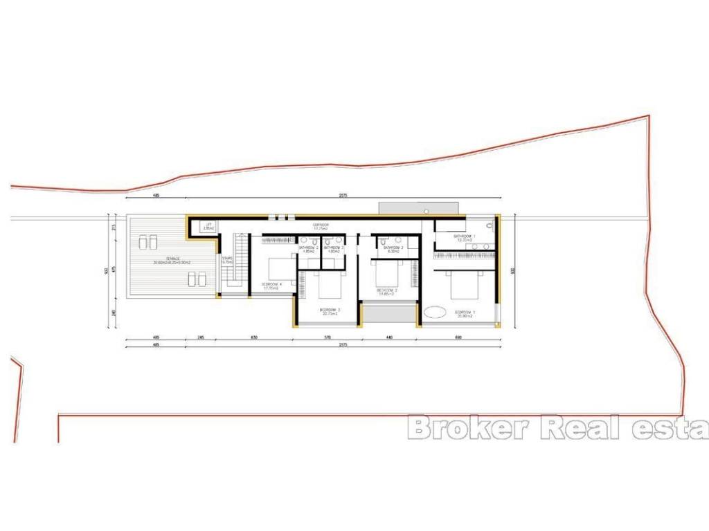 Luxury villa with sea views, located within a small residential complex not far from Omiš.   The villa has a living area of 581 m², and is set on a plot of approximately 1400 m², and is designed to provide maximum comfort and superior functionality.   In the basement there is a garage and a storage room, providing space for vehicles and additional storage. The ground floor consists of a spacious living room connected to a modern kitchen and a pantry. On this floor there is also a sauna and a fitness area, while a winter garden and a hobby room offer additional facilities for relaxation and entertainment.   On the first floor there are four bedrooms, each with its own private bathroom, providing complete privacy and comfort. A 10 m² terrace offers a beautiful view of the Mediterranean landscape and the sea. An additional advantage of this property is the elevator, which connects the garage and all floors of the villa.   The outdoor area is enriched with a large swimming pool, summer kitchen and terraces that provide an ideal place for sunbathing and enjoying the outdoors.   This property offers the perfect blend of luxury, functionality and natural surroundings, and is an ideal choice for those looking for a premium living space or an investment in the tourism sector.