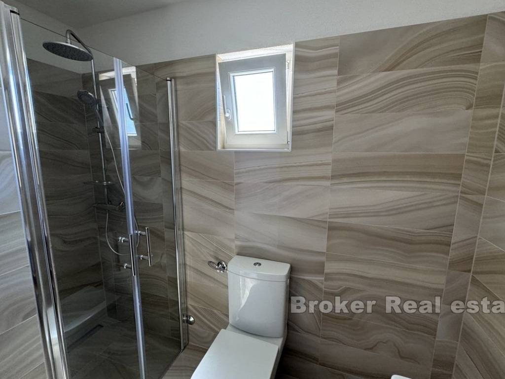 This spacious and functional property is located in Rogoznica, and is located on the second floor of a family house. This unique property consists of three separate apartments, which are sold together, but each has its own separate entrance, which offers flexibility and the possibility of multiple uses.   Two apartments consist of an entrance area, a kitchen with a dining area, two bedrooms and a bathroom. There is access to the covered balcony from the living room. The third apartment is a studio apartment, which also has access to a covered balcony.   There are parking spaces in front of the house, one space for each apartment. The great advantage of these apartments is the possibility of decorating according to your own wishes. As well as the possibility of solving the housing issue, but also an excellent investment for tourism.   The property is located in the immediate vicinity of the center of Rogoznica, as well as near all the necessary facilities such as restaurants, cafes, shops and beaches. Due to its exceptional location and position, the apartment is ideal for tourist purposes.   Rogoznica is a quiet and picturesque village surrounded by a beautiful seascape and crystal clear sea. The city of Šibenik is 34 km away, Split airport is 32 km away, while Split itself is 50 km away.