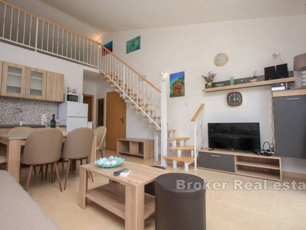House for sale, first row to the sea. Located on the beautiful island of Hvar. This unique property extends over 4 floors and consists of 11 fully furnished apartments. Each apartment has a kitchen and a bathroom, and a balcony or terrace with a breathtaking view of the sea. There is a pebble beach right in front of the building. Complete peace is guaranteed and this property is great for all those who want to escape from the fast-paced everyday life. An asphalted road leads to the bay itself, where there are only a few houses. A large parking lot for 15 cars is provided in front of the house and in the garage.