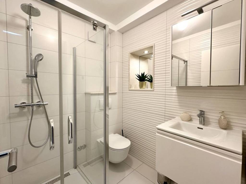 An exceptional stone house located in the charming village of Sutivan on the island of Brač. This delightful property offers 90 m² of living space spread across three floors, combining traditional architecture with modern design. Built with high-quality materials and meticulously maintained, the house ensures durability and top-notch functionality.The ground floor has a separate entrance and is designed as a functional studio apartment, providing privacy or potential for tourist rental. The second and third floors are connected by an internal staircase. The second floor features a spacious living room, a fully equipped kitchen, and a modern bathroom, while the third floor is dedicated to a cozy bedroom with an en-suite bathroom and access to a beautiful terrace. The house features a private parking space and an additional room designed as a laundry area and a small storage space, ensuring extra functionality and convenience. Located just a few minutes’ walk from the town center and the waterfront, this property offers everything needed for a relaxed and high-quality island lifestyle or as an investment in tourism.