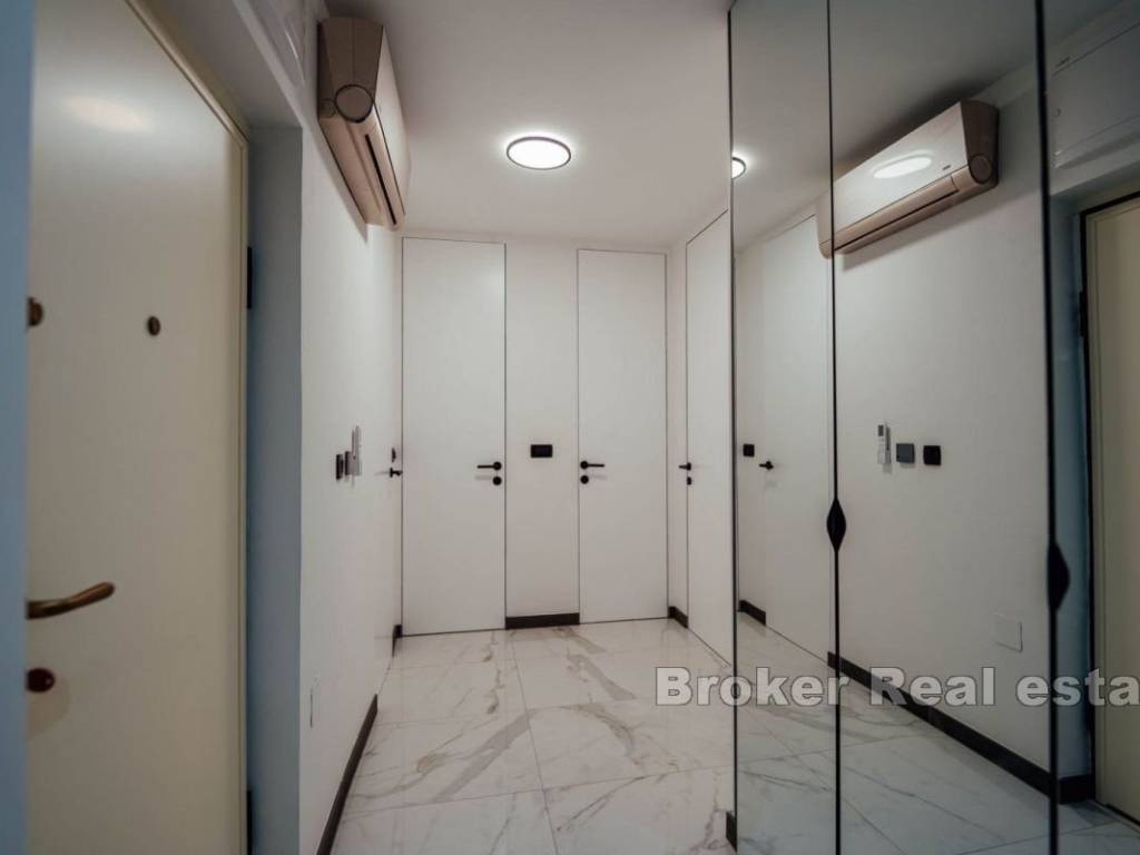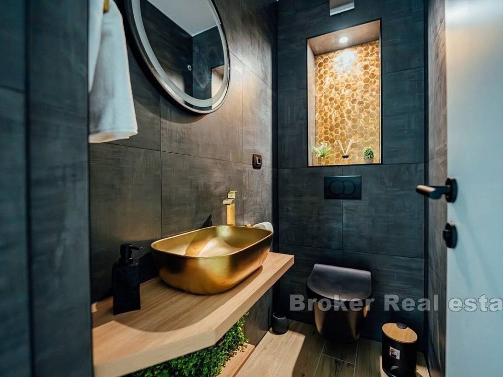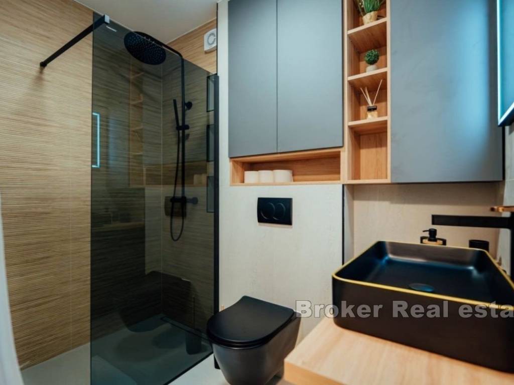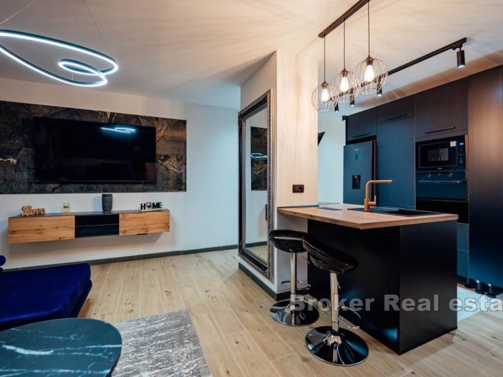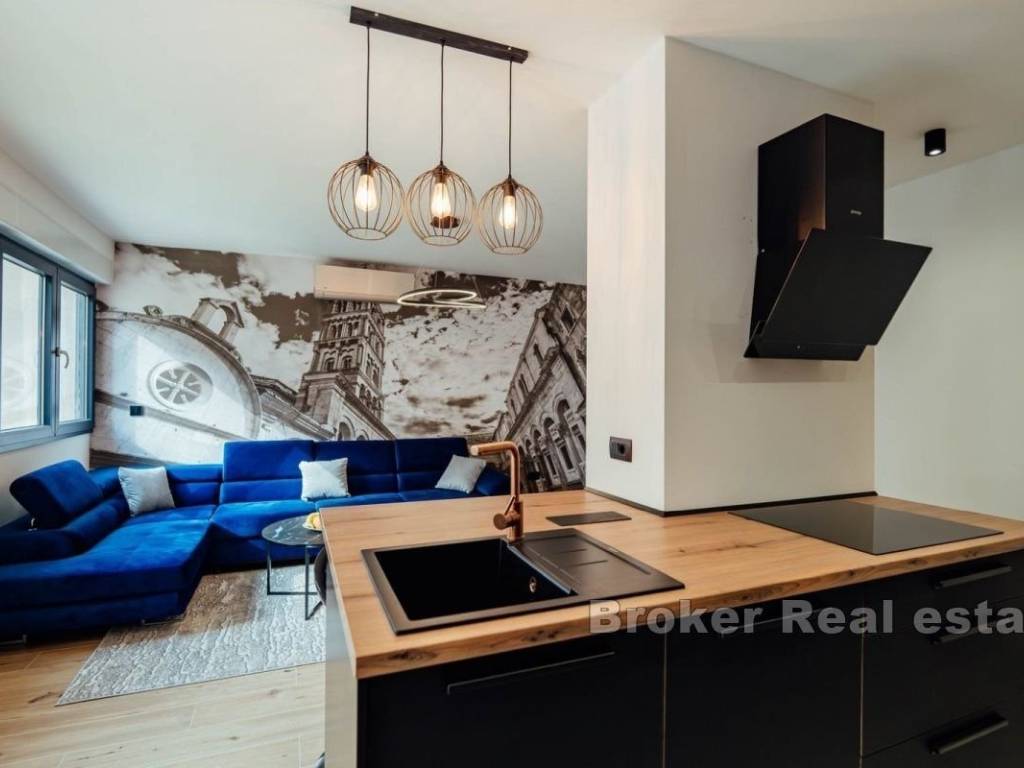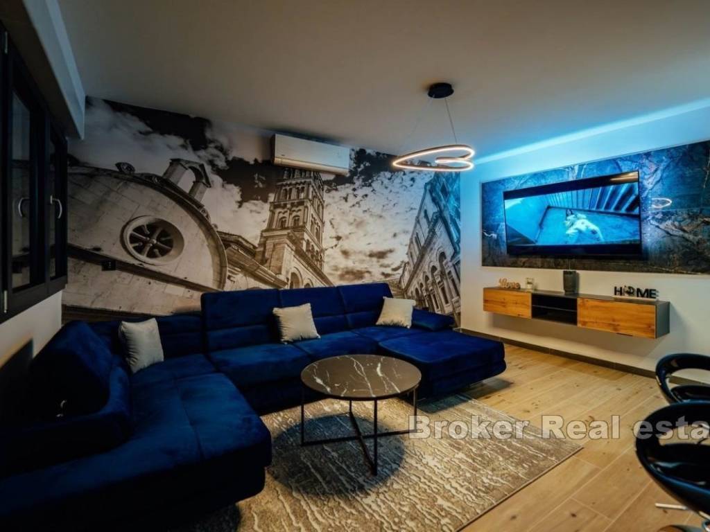 Modern furnished apartment for sale in Split, located on the second floor of a residential building with an elevator, located on the south side of the city. It consists of two bedrooms, one bathroom + toilet, living room with kitchen and a spacious terrace. The apartment is fully air-conditioned and is sold together with furniture and equipment. The apartment also includes one garage space in the building for an additional fee. The apartment is in a great location due to its close proximity to all facilities (kindergarten, school, shops). It is located 2 kilometers from the city center and Diocletian’s Palace.
