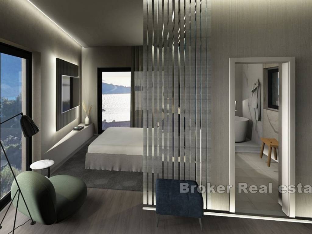 For sale is a newly built villa with a swimming pool and sea view located in the town of Primošten. The property is spread over two floors and has a total living area of 250 m2. It is located on a plot of land with a total area of 550 m2.   The ground floor consists of a garage, engine room, wellness. The living room, kitchen and dining room are also located on the ground floor.   An internal staircase leads to the second floor, where there are four bedrooms, each with its own bathroom and wardrobe, a storage room and a hallway. The master bedroom has access to a covered terrace of 22 m2 with a view of the sea.   In the yard there is a summer kitchen, a sundeck and a swimming pool.   Floor heating will be installed in the living room and bathrooms via a heat pump. There will be a charging station for electric cars in the garage.   The future owner has the option of changing the materials and equipment of his choice and with his additional charge.   The property is only 300 m from the sea and 750 m from the town center.