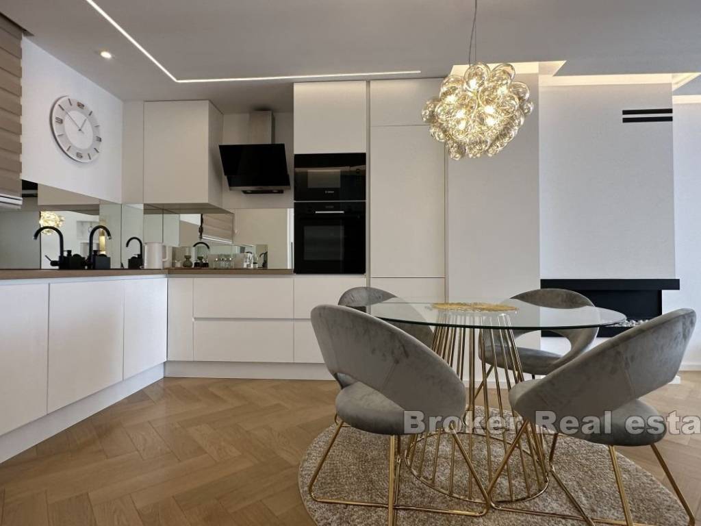 This fully renovated two-bedroom apartment in the heart of the city, just a short distance from Diocletian’s Palace and the Riva promenade, is the perfect choice for those who want to live in the center of Split. Located on the fourth floor of a residential building, this spacious 60 m² apartment offers both comfort and modern design. The apartment features a functional entrance hall, corridor, two spacious bedrooms, an elegantly designed bathroom, a storage room, and an open-plan living area that includes a living room, kitchen, and dining area. It also includes a dedicated storage room in the building’s basement. There is the possibility of installing an elevator, which will further increase its value. The apartment stands out for its high-quality renovation and modern furnishings, making it ideal for both everyday living and rental purposes. Free and paid parking spaces are available in the immediate vicinity of the building, a rare advantage in the city center. This prime location provides easy access to all essential amenities, including schools, shops, cafes, pharmacies, and bakeries. Additionally, Marjan Park Forest, perfect for walks and outdoor activities, is just a few minutes’ walk away.