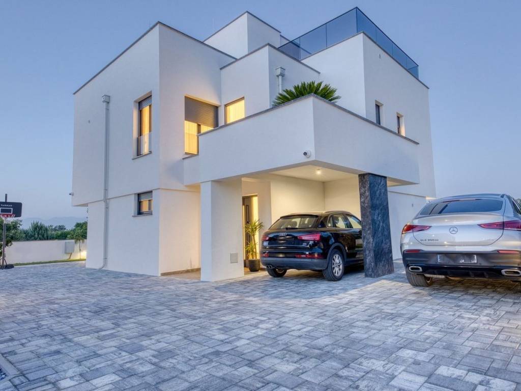 This modern villa is situated in a picturesque location near the sea and the beach, ideal for those seeking a peaceful life close to natural beauty. The villa is set on a 761 m² plot and spans two floors, with a total living area of 209 m², including a rooftop terrace of 24.72 m². The ground floor features an entrance area, a toilet, a sauna, a laundry room, and a spacious open-concept area that includes a fully equipped kitchen, dining room, and living room. The first floor houses four comfortable bedrooms, each with its own bathroom. A special highlight of this property is the rooftop terrace with a pool and sunbathing area, perfect for relaxation and enjoying the view. In the beautifully landscaped and fenced yard, there are parking spaces for several cars, an additional building with an outdoor summer kitchen, and another pool with a sunbathing area. In addition to being perfect for comfortable family living, this villa also offers an excellent opportunity for tourist rentals.