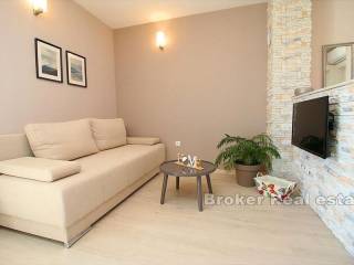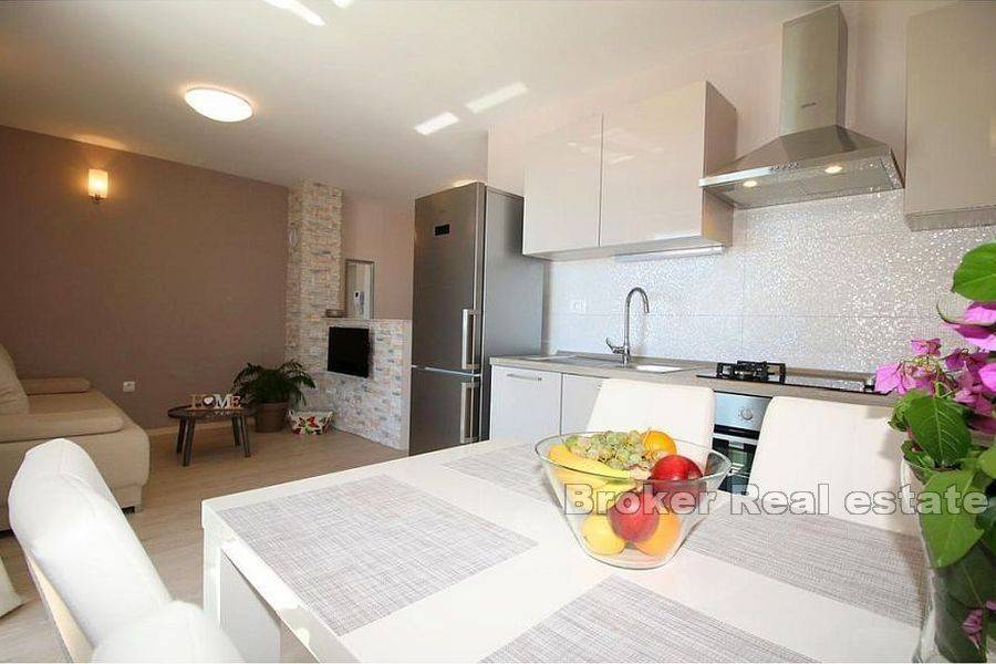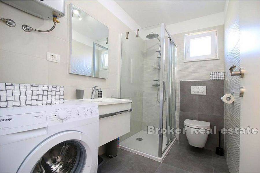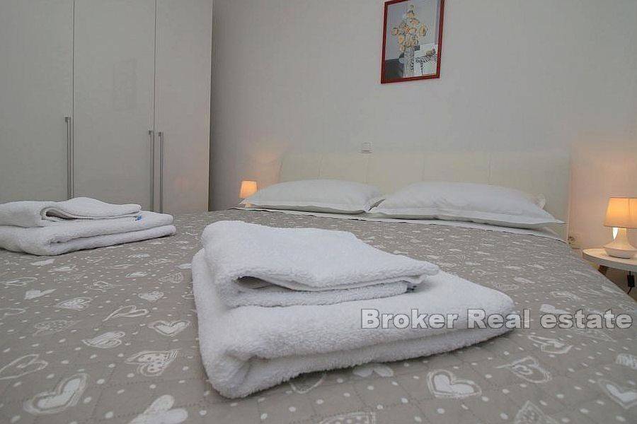 Apartment house first row to the sea on a great location. The house of 310m2, built on a plot of 590m2, spreads over 3 floors. -On the ground floor there is a comfortable three bedroom apartment consisting of three bedrooms, living room with kitchen and dining room, two bathrooms and storage. In this ground floor there is a studio apartment with its own kitchen and bathroom. This ground floor has direct communication with a large garden in front of the building. -On the first floor there are two separate one-bedroom apartments, each about 40m2, both apartments consist of a living room, dining room, kitchen, bedroom, bathroom and balcony with an open sea view. -On the second floor (attic) there are also two one-bedroom apartments of approximately 40m2 and are arranged as follows: living room with dining area, kitchen, bathroom and bedroom. Both apartments have a balcony. The house has a total of 6 apartments, all apartments are fully furnished, equipped and air conditioned, all units have access to a terrace or balcony overlooking the sea and the beach in front of the house. Everything is new, the property is A-certified.