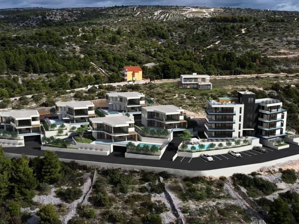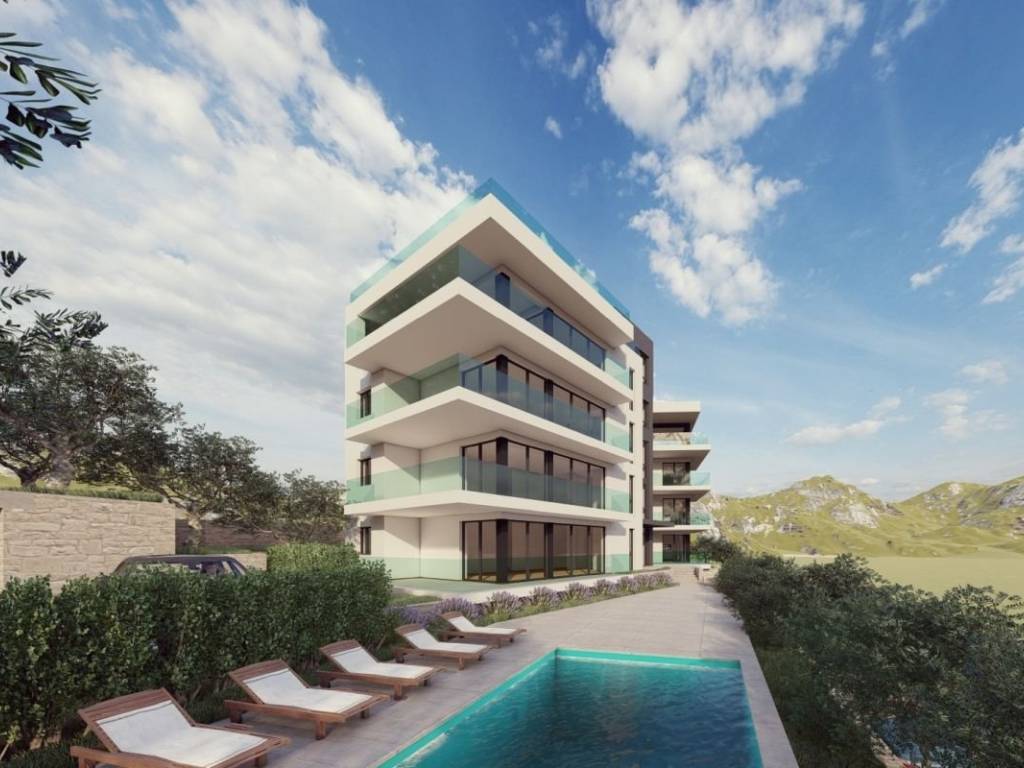 A luxurious new development with a pool in a peaceful part of Primošten is now for sale. The apartment consists of 2 bedrooms, 3 bathrooms, an open-concept living room and kitchen, and a spacious terrace. The interior area of the apartment is 95m², with a total area of 132m² including all associated spaces. The price of the apartment includes 2 outdoor parking spaces, as well as fully equipped bathrooms, a kitchen, air conditioning units, and built-in wardrobes. The building is being constructed with exceptional quality, ensuring maximum comfort for future owners. The property features a shared pool, an outdoor kitchen, a gym for co-owners, an elevator, and an open, unobstructed view of Primošten. The expected completion of construction is spring/summer 2025. Nearby, you will find shops and a health center. The sea is 500m away, and the center of Primošten is just 900m. Split Airport is 40km away. Available apartments: Apartment S1: Ground Floor – 130m² – €450,000 Apartment S2: Ground Floor – 132m² – €450,000 Apartment S3: 1st Floor – 128.5m² – €450,000 Apartment S4: 1st Floor – 132.5m² – €450,000 Apartment S5: 2nd Floor – 128.5m² – €450,000 Apartment S6: 2nd Floor – 132.5m² – €450,000