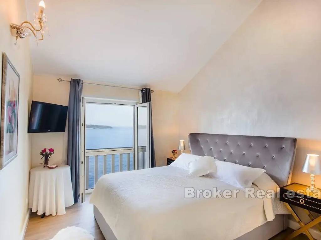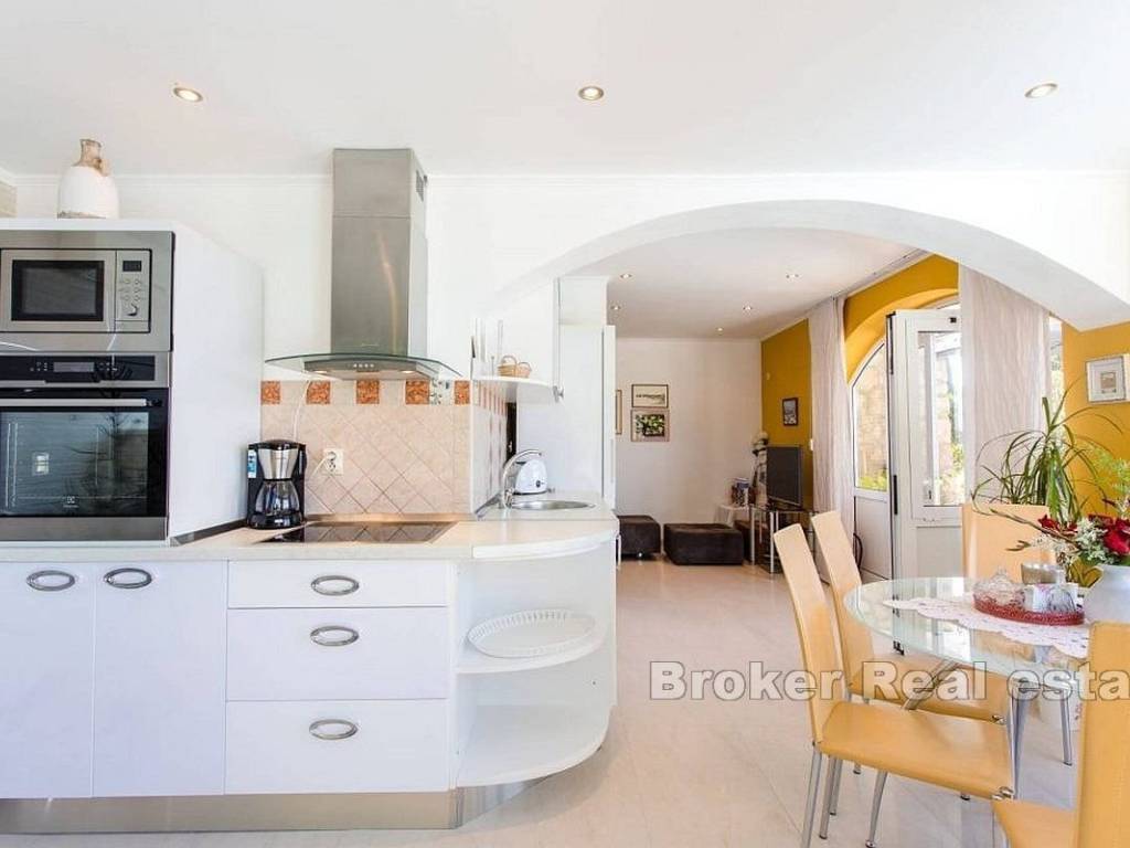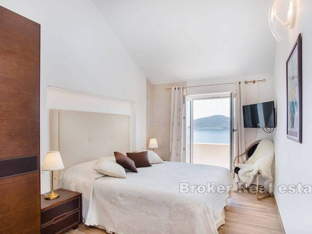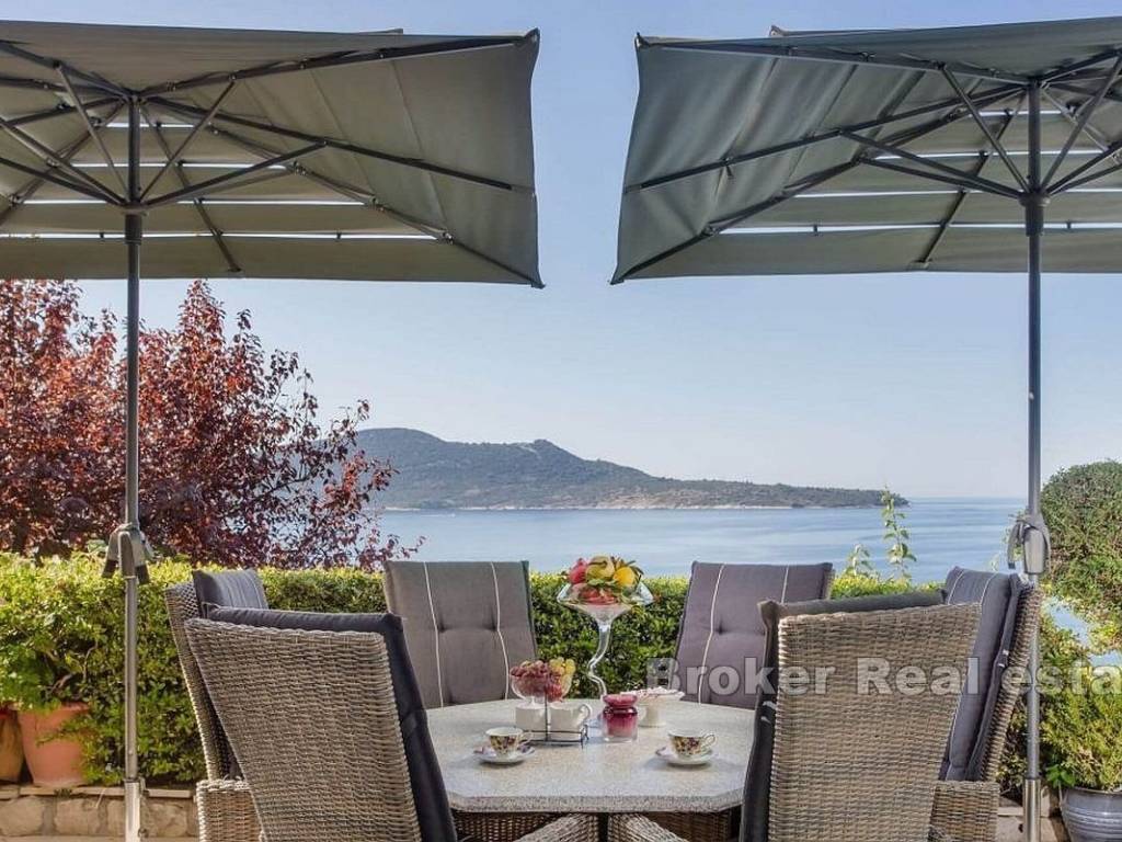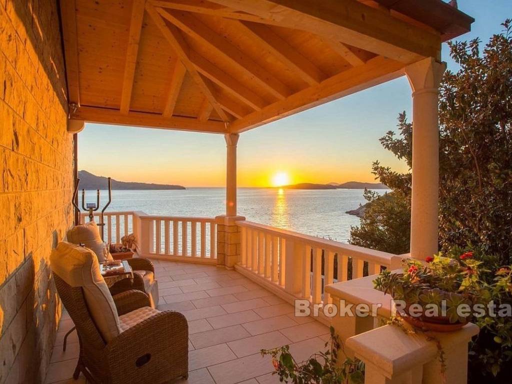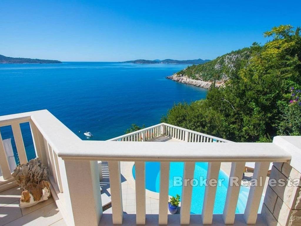 Located in a village near Dubrovnik, this beautiful house with an impressive panoramic view represents a rare opportunity on the market. This authentic house made of stone is surrounded by a Mediterranean garden and the entire property overlooks the crystal clear sea that stretches directly in front of it.   The total land area is 950 m2 with three floors with a total living area of ​​200 m2, which are organized as follows:   The ground floor is designed as an open, bright space where there is a bathroom, a kitchen with a dining room and a living room with access to a spacious terrace with a swimming pool and outdoor furniture with a barbecue. The upper floor has a bathroom, a kitchen with a dining room, a living room and a covered terrace. The last floor is arranged in such a way that there are three bedrooms, each with its own bathroom, and another bedroom that is currently used as a dressing room.   Each of the floors has its own separate entrance, which allows the future owner different options of use, from private accommodation to tourist rental.   The property has a total of four parking spaces and is 12 km from the center of Dubrovnik by air. This property represents an oasis of peace with a breathtaking view, and the additional potential is the continuation of the well-established tourist business.