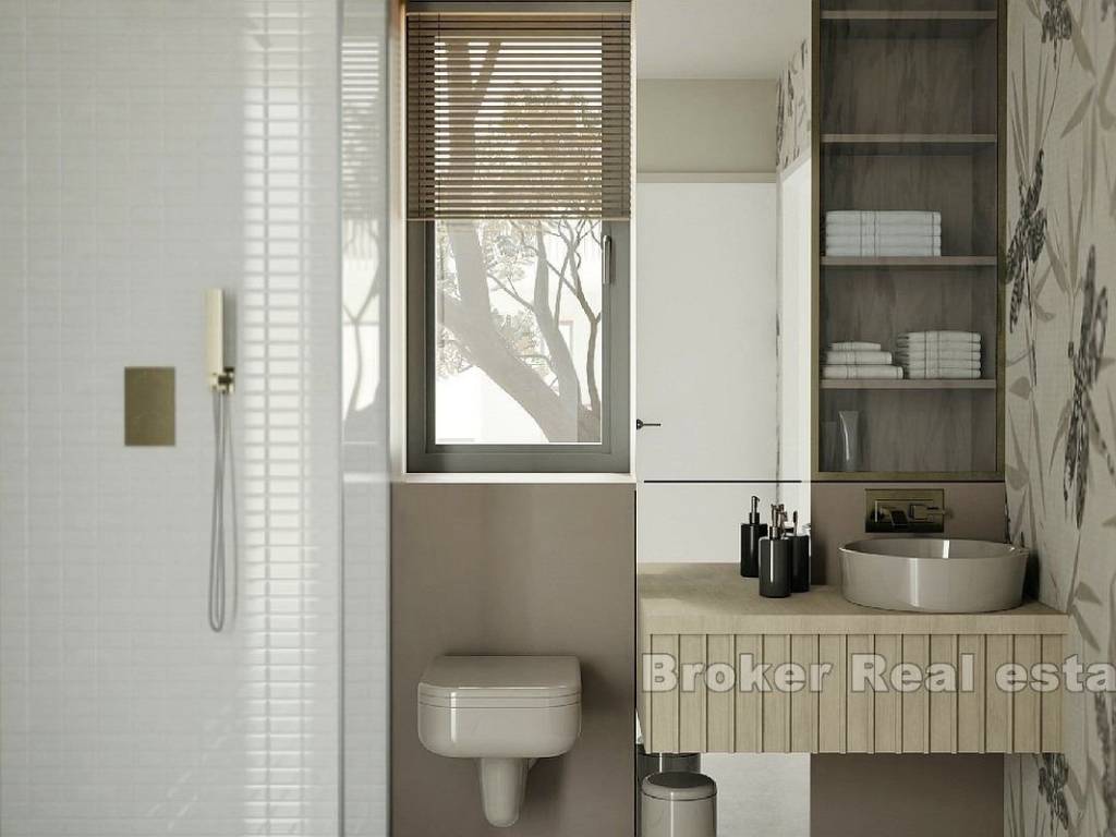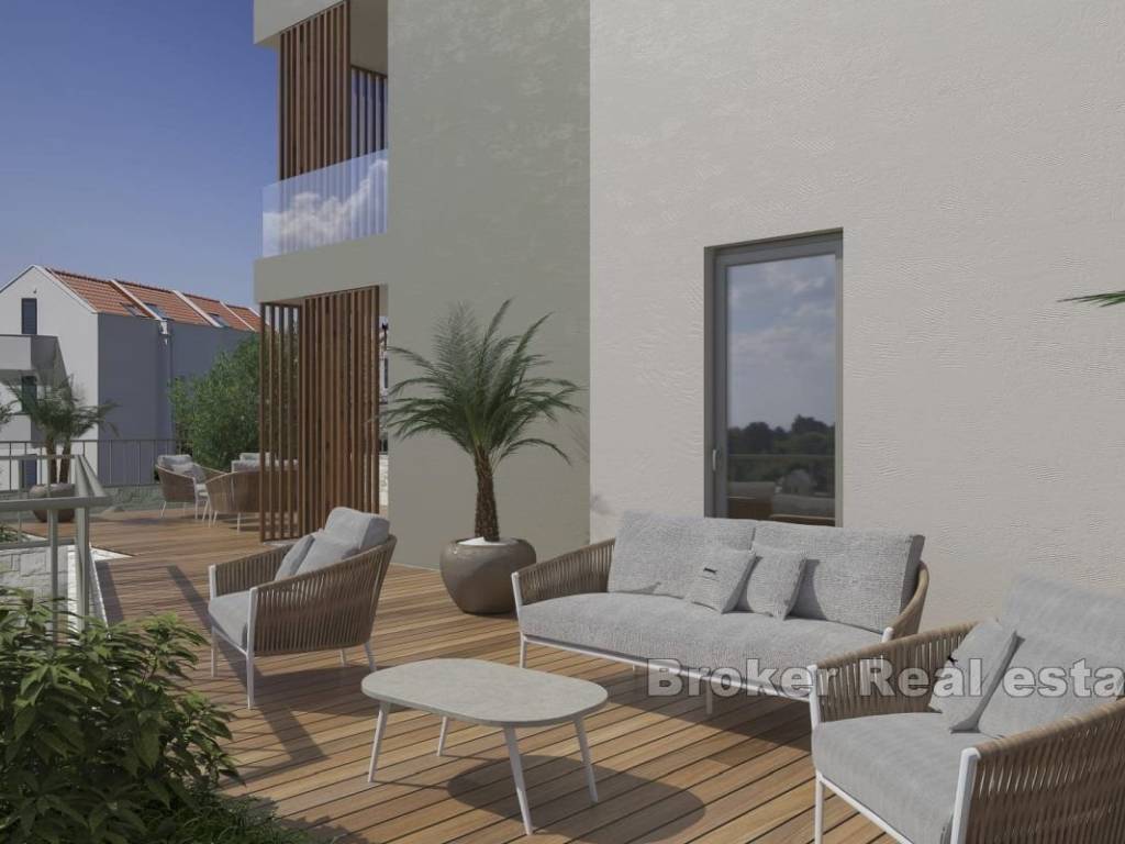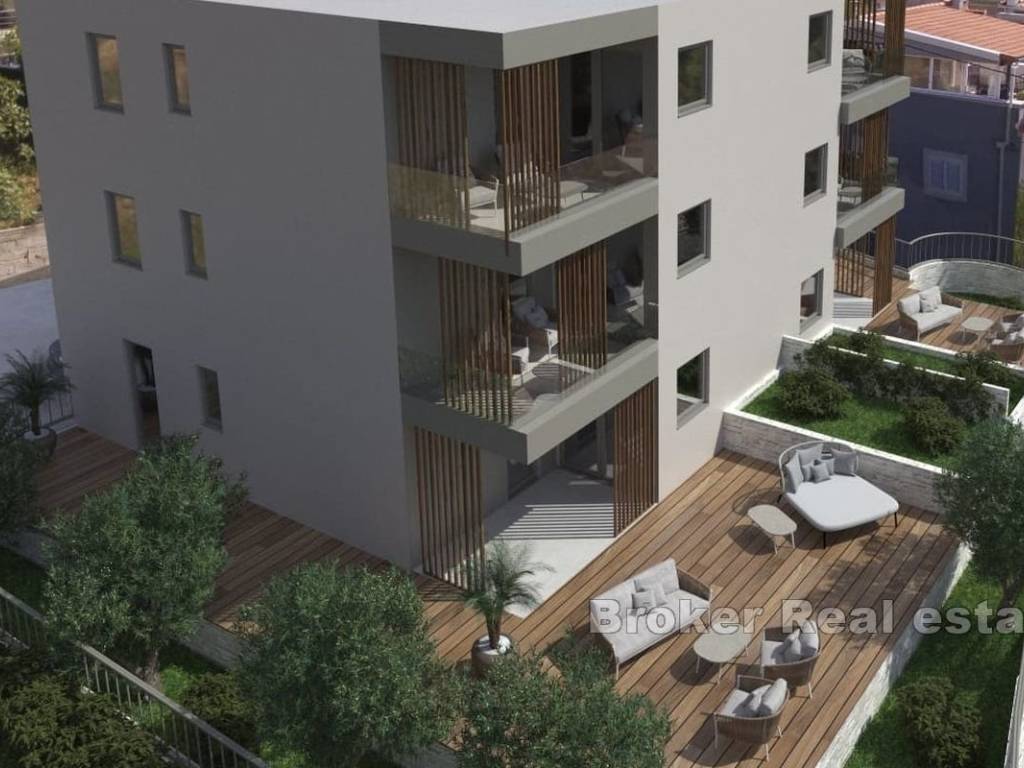 Modern apartments in Solinare for sale. They are located just few minutes walk from the city center of Solin, as well all amenities necessary for daily living, such as school, public and health institutions, and shops. The apartments are situated in a residental building with a total of 3 floors and are south-facing. Each floor has two apartments. Three of the apartments have two bedrooms and consist of bathroom, a toilet, a balcony and an open space comprising the kitchen, dining room, and living room. The other three apartments have three bedrooms, each with two bathrooms, a balcony, a storage room, and an open space where the kitchen, dining room and living room are located. The ground floor apartments also have their own garden. Each apartment is allocated one garage parking space, with the possibility of purchasing an additional space. It is also possible to reach the apartment directly from the garage via an elevator. A modern security system with video surveillance of the building and anti-burglary doors additionally provide safety and privacy. High quality materials are being used in the construction, and heating and cooling are provide by air conditioning and underfloor heating in the bathrooms and the possibility of installing underfloor heating in the living room. The property is 6 km from the city center of Split and 15 km from Split Airport, making it ideal for everyday living or as an investment. The planned start of construction is summer 2025, and the planned completion of construction is autumn 2026. GROUND FLOOR: S1 – 85,66 m² + balcony 9,34 m² + garden 89,29 m² – 400.000,00 € – SOLD! S2 – 65,10 m² + balcony 9,34 m² + garden 73,57 m² – 360.000,00 € – SOLD! FIRST FLOOR: S3 – 85,66 m² + balcony 8,58 m² – 400.000,00 € S4 – 65,10 m² + balcony 8,58 m² – 300.000,00 € – SOLD! SECOND FLOOR: S5 – 85,66 m² + balcony 8,58 m² – 430.000,00 € S6 – 65,10 m² + balcony 8,58 m² – 330.000,00 € – SOLD!