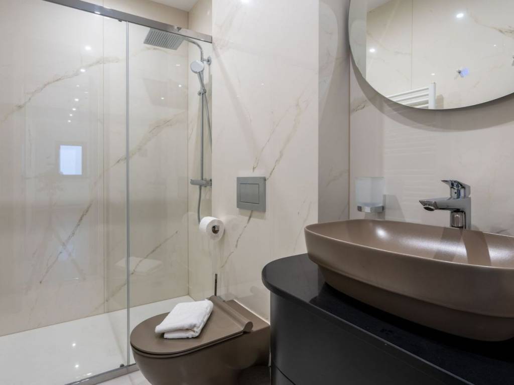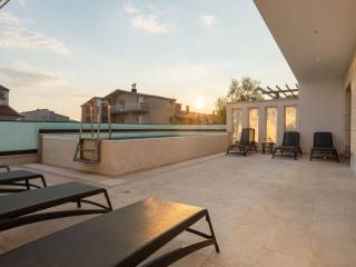 For sale is a fenced holiday villa, an exclusive villa that has a panoramic view of the crystal sea and is located near the town of Makarska, next to Omiš and Split. It is positioned on the south side and exudes the highest comfort, modern interior and elegant design. It offers an ideal modern ambience with a unique view of the Mediterranean coast. With a lot of attention to interior and exterior details, modern technical equipment, the latest building materials with a magical touch of glamour, this villa provides a luxurious vacation for every family. It was built on three floors.   It consists of 5 spacious rooms, 5 bathrooms and 1 toilet, swimming pool and quality garden furniture with barbecue for preparing delicacies, 2 garages and numerous balconies and open and partially covered terraces.   In the basement there are 2 garages and part of the space with outdoor parking. On the ground floor there is a spacious living room for evening gatherings, a dining room and a kitchen from which you can go out to a partially open terrace for relaxation with a swimming pool. There is also 1 bedroom, bathroom and toilet. The villa is fully air-conditioned. On the first floor there are 4 spacious rooms with 4 bathrooms. Each room has its own private balcony.   The building is sold fully equipped and furnished with high-quality interior and exterior (home appliances, flat screen TVs, LED lighting, automatic cooling system, etc.). The property is a unique choice due to its southern position/Mediterranean climate, panoramic view of the clear sea, the building’s architecture and numerous sandy beaches nearby. It is a place with a distance to the nearest larger city of Split of 50 km and Split airport of 70 km.