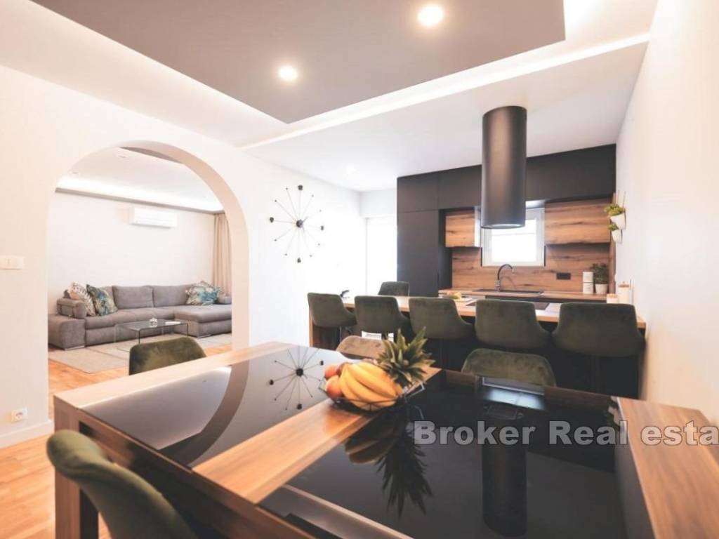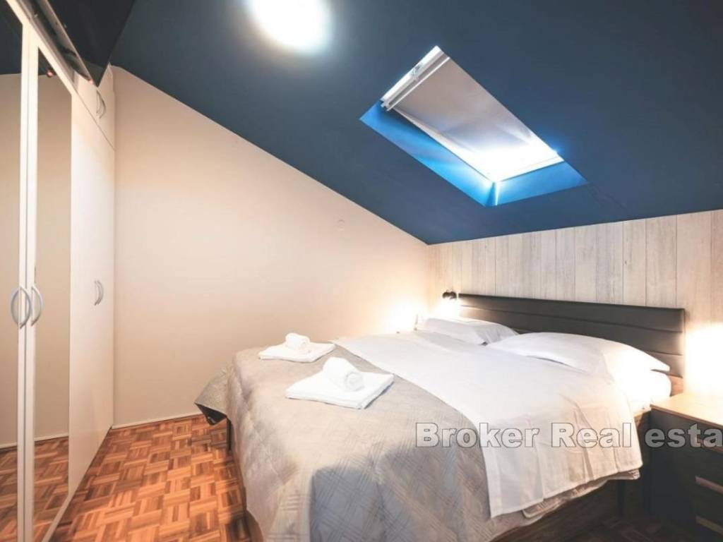 A beautiful villa with a pool and landscaped garden is for sale, located just a 10-minute walk from the center of Zadar. The villa is situated on a 588 m2 plot and spans four floors with a total living area of 240 m2. In the basement, there’s a cozy “man cave” equipped with a billiards table, dartboard, and video games. The rest of the house is connected by internal stairs. On the ground floor, there are three studio apartments. The first floor features a fully renovated two-bedroom apartment with a large terrace that provides access to the courtyard with the pool. The attic is home to a fully renovated three-bedroom apartment with its own balcony offering a sea view. The house is being sold fully furnished and is well-established in the tourism industry. The beautifully designed fireplace and the pool area will meet the expectations of even the most demanding guests. The property is conveniently located near the center, just 250 meters from the sea, 1.5 km from the old town, and 3 km from Zadar Airport.