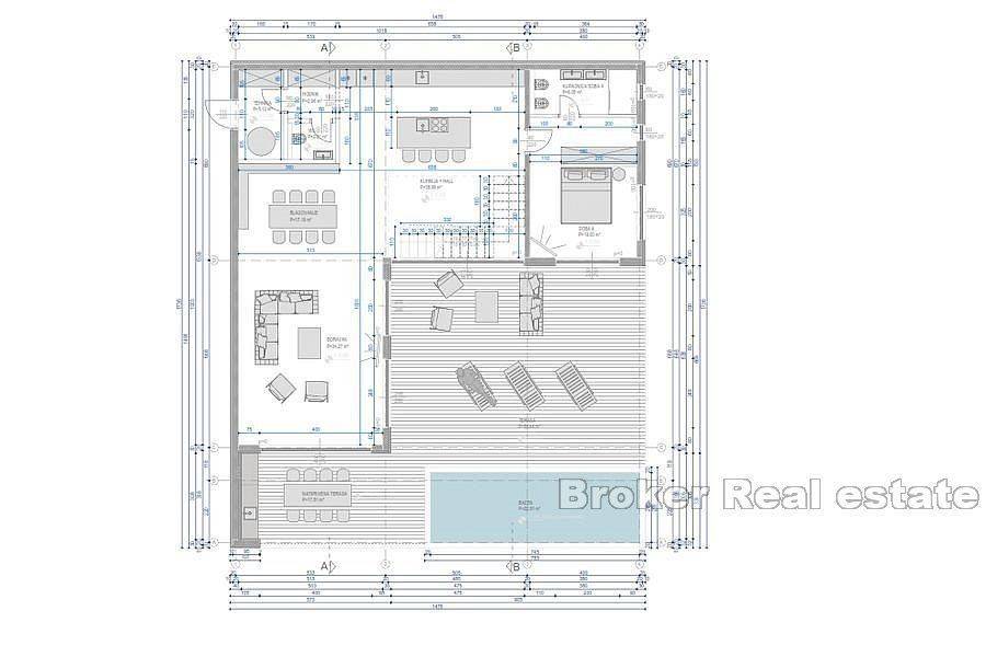 Luxury villa with pool and sea view located in an attractive location near the city of Split. The villa is spread over three floors: basement, ground floor and first floor. In the basement there is a technical room, a fitness room, a Finnish sauna and a toilet. The ground floor consists of a storage room, a living room with a dining room, a toilet, one bedroom with an attached bathroom and a walk-in closet. From the living area, there is access to a covered sundeck with a pergola, where there is an overflow pool with counter-current swimming and a summer kitchen. There are three bedrooms with their own bathrooms on the first floor.   Air conditioning and underfloor heating installed on all floors. The property is equipped with the highest quality equipment and a smart home system, it is connected to an application for lighting, sound system, alarm, video surveillance with a touch screen in every room. Separate system for underfloor heating, room heating and cooling with a touch screen in each room. Entry into the villa with a fingerprint.   The landscaped garden with irrigation and greenery is fenced and offers privacy. There is a tennis court next to the access road. The villa has a separate private access road, has three parking spaces and a connection for powering electric cars. The price of the property is shown without VAT, and the price will be increased by the prescribed VAT rate.