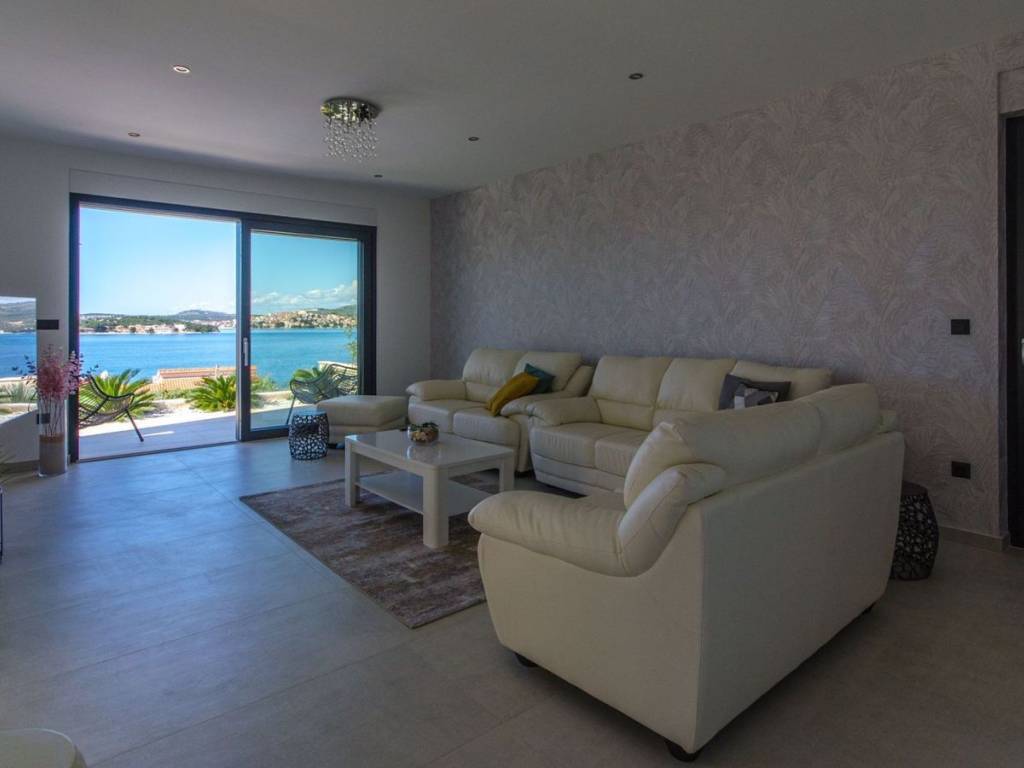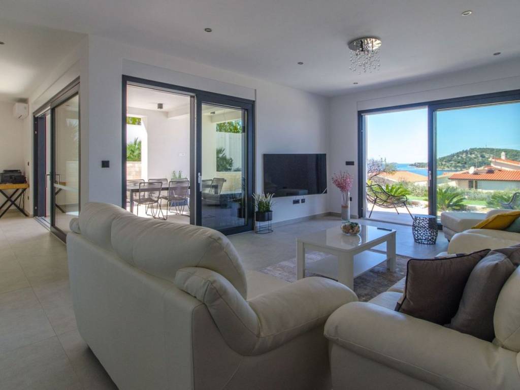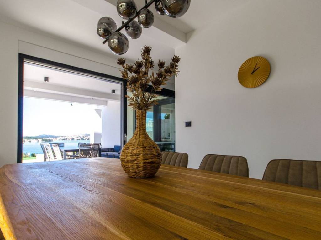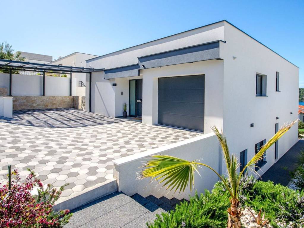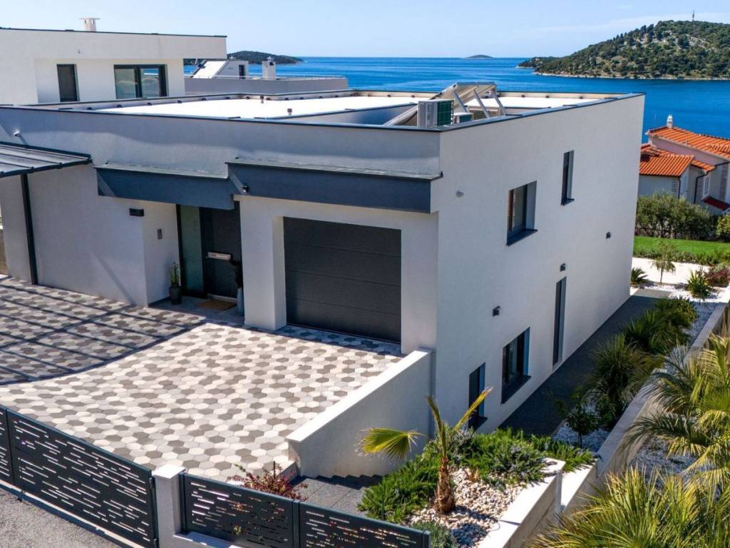 A beautiful newly built villa with a pool and an open sea view is offered for sale near the town of Rogoznica, located in a cul-de-sac in a beautiful micro-location where predominantly modern holiday homes are situated, just 100 meters from the beautiful Adriatic Sea. The villa consists of two floors, a garage, a pool, and a beautiful terrace. From every part of the villa, there is an open sea view. On the ground floor, there is one bedroom with its own bathroom, a guest toilet, a storage room, and a technical room, a kitchen with a dining area, a living room, and access to a beautiful terrace with an overflow and heated pool. On the first floor, there is the main entrance leading directly from the parking lot or from the garage connected to the house, 3 bedrooms, one of which is a master bedroom with its own bathroom, while the remaining two bedrooms share one bathroom. The master bedroom, together with another bedroom, has access to a private balcony, offering an incredible view of the sea, the town of Rogoznica, and the sunset. This property is an exceptional opportunity, built in mid-2022, representing a real opportunity for either living or engaging in tourism.