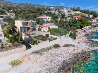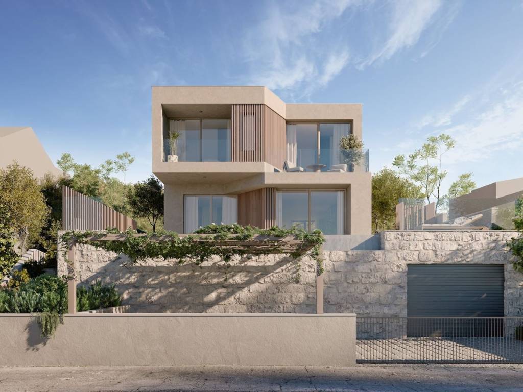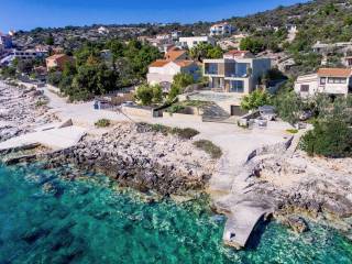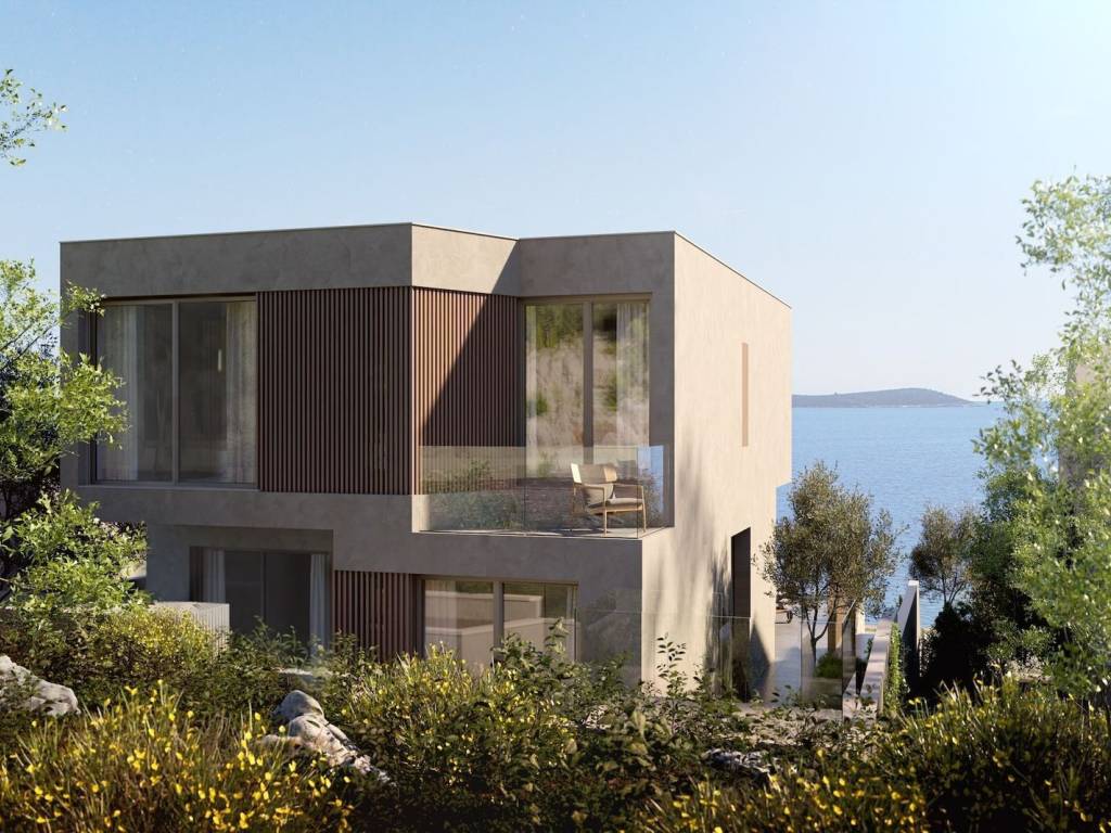 This extremely attractive villa is located in the beautiful small tourist town of Sevid, near Rogoznica and Trogir. The villa is currently under construction, and the project is expected to be completed in the first half of 2026. It represents a rarity and an exceptional opportunity on the market of luxury residential holiday properties on the Croatian coast.   It was designed according to the highest standards of contemporary architecture, with an emphasis on construction quality, functionality and aesthetics. Only top-quality materials and equipment from renowned manufacturers are used in the construction and furnishing.   The total living area of the villa is 350 m², and it is spread over three floors: basement, ground floor and first floor. The villa has five spacious bedrooms, each with its own bathroom.   The basement houses a garage, engine room, compensation pool, sauna, fitness room, bathroom, technical room and laundry room. The basement floor plan can be adapted to the buyer’s wishes.   The ground floor includes a modern kitchen, a guest toilet, one bedroom with an en-suite bathroom and a dressing room, and a spacious living room with a dining area. The living area opens onto a spacious terrace with a heated infinity pool and a beautiful panoramic sea view. The bedroom on the ground floor has access to a well-kept garden on the north side, while the kitchen leads to an outdoor area with a barbecue.   On the first floor there are four elegantly decorated bedrooms, each with a private bathroom and access to a balcony or terrace. The master bedroom on the south side also has its own walk-in wardrobe.   The villa is equipped with an underfloor heating system, a heat pump for water heating and a multi-split air conditioning system with indoor units discreetly built into the suspended ceiling.   The garden is carefully landscaped with Mediterranean plants, equipped with an automatic irrigation system, a sunbathing area, parking for four vehicles (two of which are covered under a pergola), and a garage for at least one vehicle. The entire property is fenced and equipped with automatic electric gates.   A special value for this property is its microlocation – it is located at the end of a dead-end street, which ensures peace, privacy and relaxation in the immediate vicinity of the sea, away from the city bustle.   A mooring for a boat up to 20 meters long is planned in front of the property.   The distance to Rogoznica is 10 km, while Split Airport is 27 km away.
