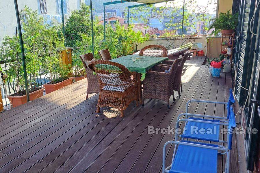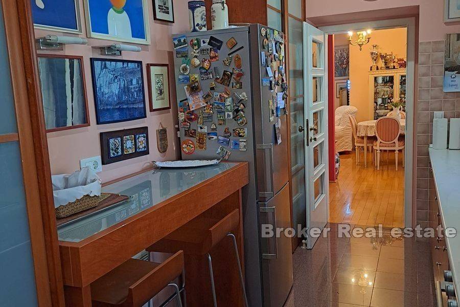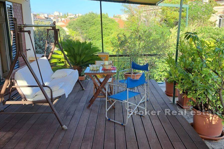 Exceptional, Art Nouveau designed and decorated apartment, approximately 77 m2, located on the second floor of an Art Nouveau villa with a rich history, oriented east-south-west. It consists of a spacious open plan living room with dining area, kitchen, hallway, one bedroom, bathroom with toilet, and a small additional toilet. The openness and airiness of the apartment are also contributed by the 3 meter high ceilings as well as large windows overlooking the city. The apartment has two exits leading to a spacious sunny terrace of approximately 76 m2 located on the south side of the apartment. The terrace is completely decorated and surrounded by planted Mediterranean horticulture. It has been turned into a real oasis of peace, with a sun deck, and a part for socializing and dinner with family and friends. In the immediate vicinity, there is the city center, shops, schools, kindergartens, bars, restaurants, and many other facilities that allow a comfortable life and a carefree vacation. Splitska Riva, Cathedral of St. Duje, as well as all other sights of the city of Split, are only a few minutes away by walk. This well-equipped and attractive apartment, with its exceptional position, peaceful and private atmosphere, provides a unique experience of life in the city and leaves the owner the opportunity for a successful tourist business.