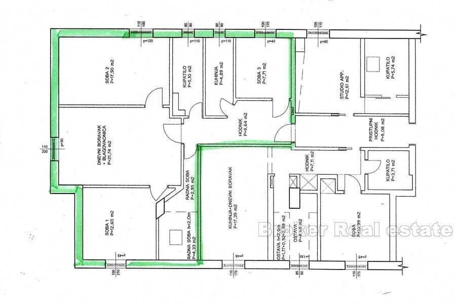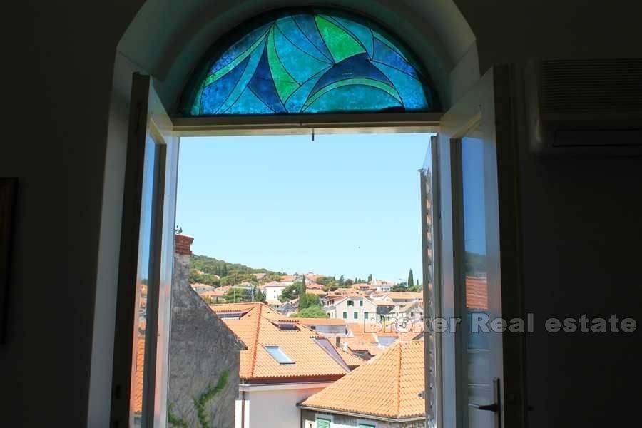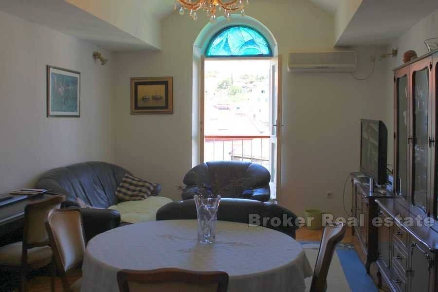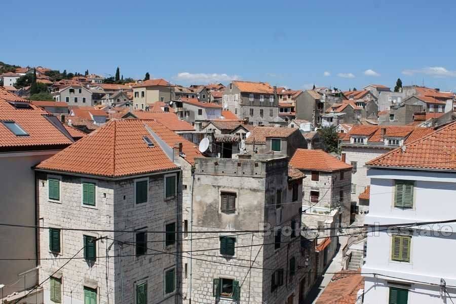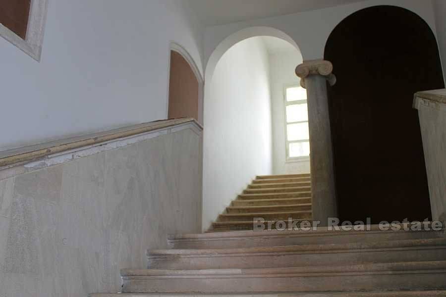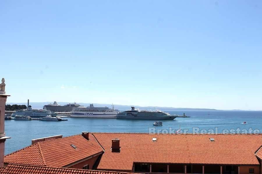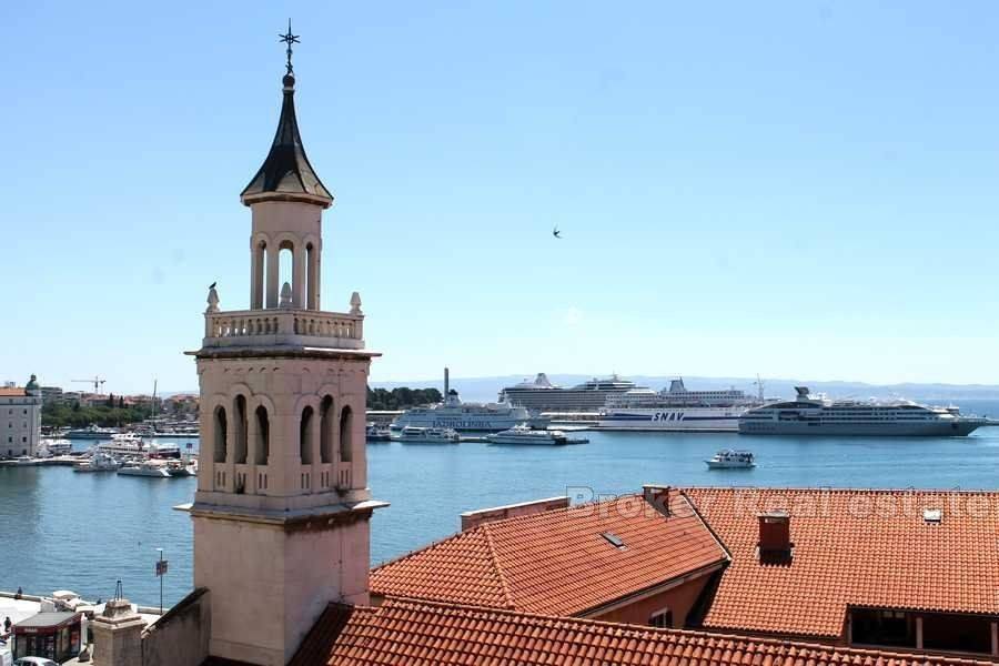 Apartment in Split on the western part of the river in a beautiful building known as the Deskovic Palace. Located on the top floor, north and south orientation with a unique view of the sea, the harbor, bell tower of St.Frane and park Marjan forest. It consists of a hallway, a kitchen, two large bedrooms and a smaller one, a bathroom, a living room with a dining room. Because of its exceptional location, the apartment is ideal for tourist rentals. Possibility of buying a neighboring apartment. In need of renovation.