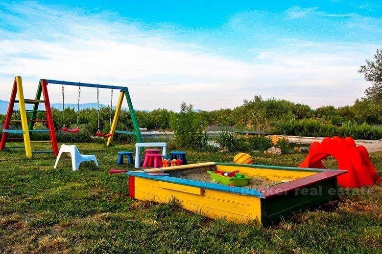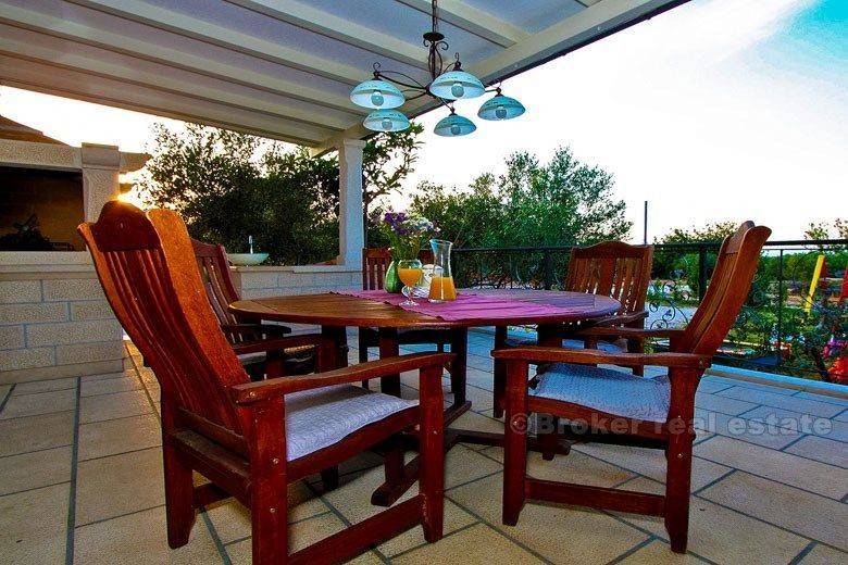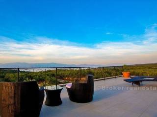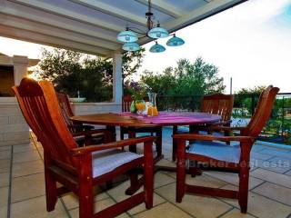 This beautiful villa offers complete peace with a breathtaking view of the sea. It was built on a land of 11 450m2 and consists of two floors and attic. On the ground floor is the living room, kitchen, 2 bedrooms, bathroom, toilet and two spacious terraces. There are also a Jacuzzi, a swimming pool and beautifully landscaped garden. On the first floor is the master bedroom with bathroom and access to the terrace where the Jacuzzi. The building is constructed with high quality materials and decorated with luxurious furniture. Around the house are olive groves. It is ideal for tourist rentals, as well as for all those who seek peace and isolation from the sea and surrounding islands.