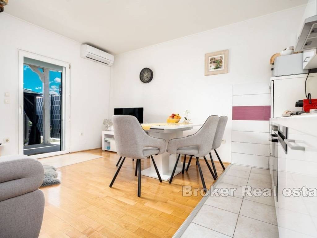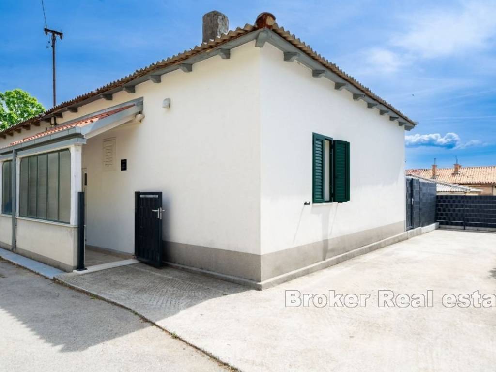 Renovated two-story house for sale, located in Dugi Rat, with a total living area of ​​54 m2, on a plot of 125 m2. The property is located in a quiet location, at the end of a cul-de-sac with very good access to the main roads, the beach (220 m) and the town center (120 m). The property consists of a hallway, 2 bedrooms, a kitchen with a dining room, a living room, a bathroom, a storage room, a loggia on the north side, and a covered terrace on the south side, where there is also a small garden. The house was built before 1968, and was completely renovated in 2014 (except for the roof), all installations, all ceramics, all windows, sanitary ware and floors were changed. After the renovation, the house was used very little, so it is in excellent and well-preserved condition and is being sold furnished. In addition to the above, the house has 2 parking spaces, while public parking is also located not far from the property. The house is connected to the complete infrastructure (electricity, water, sewerage). Considering the position, the property represents an excellent investment in the solution of the housing issue, as well as a family property for vacation.