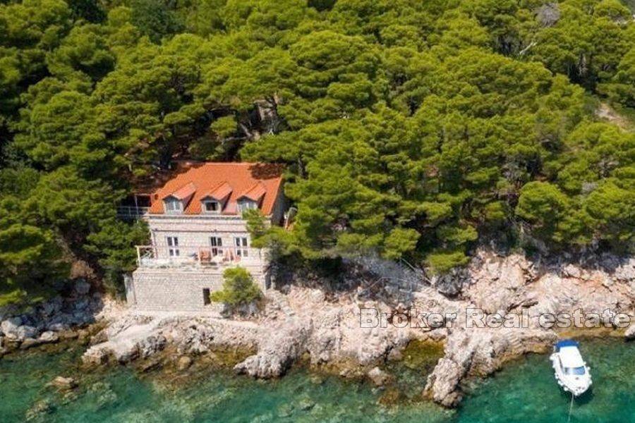 For sale is an extremely attractive property with a total living area of 162 m2 in a small island near the Dubrovnik, built on a plot of 1240 m2. The villa is for complete renovation and it stands out from other properties because of its unique location. The combination of a secluded location and the first row to the sea ensures its unique status, which is why it is a real opportunity in the real estate market. It consists of two floors with three bedrooms, two bathrooms, kitchen with dining area and living room with exit to the terrace with a magnificent sea view. Surrounded by a forest with a beach in front as well as an unobstructed sea view is a winning combination for a tourist rental investment. The villa is 6.5 km from the center of Dubrovnik by air. An excellent offer that we have no doubt will soon find a new owner.