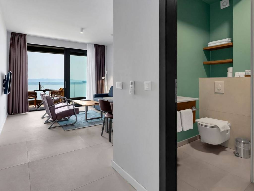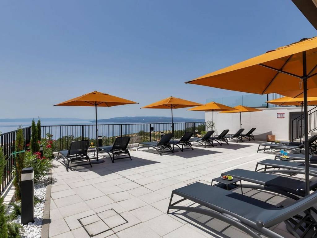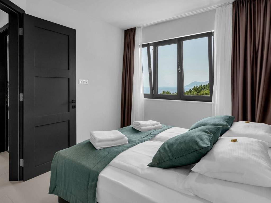 Luxury property with an open sea view located in Veliko Brdo, a suburb of Makarska, 450 m from the sea. The property with a living area of 729 m2 is located on a plot of land of 776 m2 and is spread over the basement, ground floor and two floors where 10 residential units are located. 5 units each in two separate entrances. The basement floor in the western building consists of two apartments. Apartments consist of one bedroom, bathroom, kitchen with dining room and living room. On the ground floor in the western building is one apartment with two bathrooms, two bedrooms, kitchen with dining room and living room. On the first floor in the western building there are two apartments, consisting of one bedroom, bathroom, kitchen with dining room and living room. In the eastern building, in the basement, there is the largest apartment, which consists of two bathrooms, three bedrooms, a kitchen with a dining room and a living room. There are two apartments on the ground floor of the eastern building, the first consists of one bedroom, a bathroom, a kitchen with a dining room and a living room, and the second consists of two bedrooms, a bathroom, a kitchen with a dining room and a living room. On the first floor of the eastern building are the same two apartments as on the ground floor. On the second floor of both buildings there is a covered area that is planned for the construction of a penthouse with a large terrace. All apartments have a large terrace (the apartment on the ground floor of the western building has two terraces) and all have a direct view of the sea. All apartments are air-conditioned and are for sale furnished. In front of the villa there is a large infinity pool (11X6) with a beautiful view of the sea, as well as a jacuzzi, a kitchenette, a small bar with tables and chairs and sunbeds for 30 people. In the basement, the additional area leading to the pool consists of a gym, sauna, room with entertainment content and a smaller apartment with one bedroom, kitchen and one bathroom. The property has 12 parking spaces. An attractive offer is the proximity of the necessary facilities for living and the possibility of continuing the already well-established tourist business.