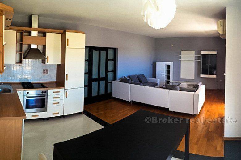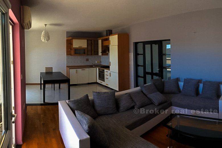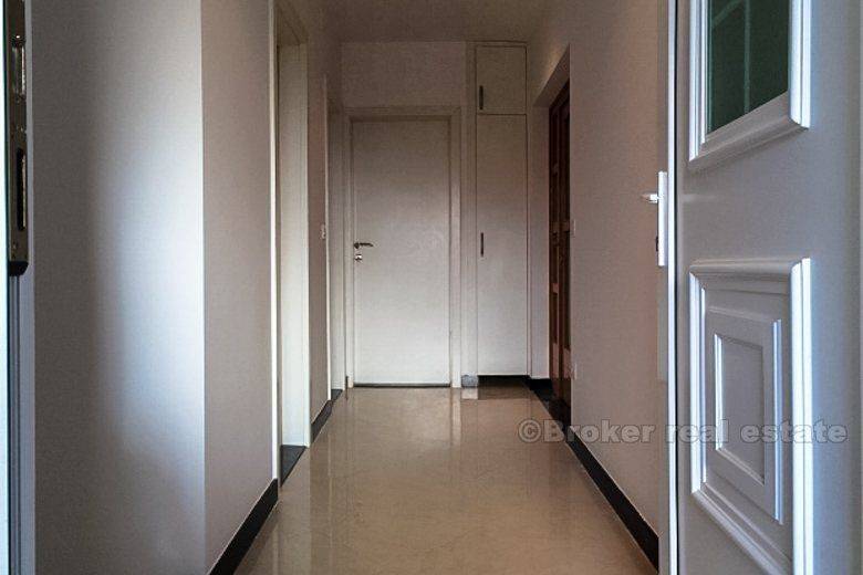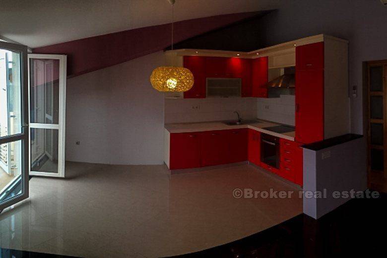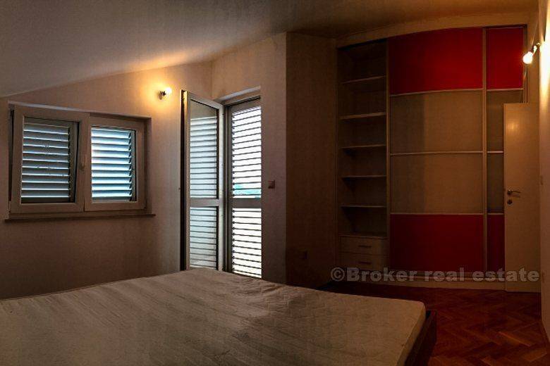Detached house in Podstrana (new building) is only 500 meters from the sea-beach, total living area of 400 m2 with garden 250 m2 with two large garages with spacious terraces. The house consists of 2 bedroom apartments, one bedroom apartment, ground floor and unfinished and 2 garages. It is completely newly furnished and equipped. Floor: ground floor, 1st floor, 2nd floor and attic. Close to the hotel ‘Leo’, highway, bus station, beach, etc.