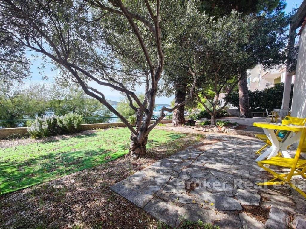 House by the sea and the beach.   The house is located in a quiet location near Primošte, only 5 meters from the sea, where its mooring is also located.   The property is in an unfinished stage, considering that it has the possibility of upgrading another floor.   It is spread over two floors: – On the ground floor there is a decorated and furnished two-room apartment as well as a 30m2 tavern. – On the 1st floor, there is a comfortable two-room apartment of 100m2 with access to three terraces, each with a view of the sea.   In its yard there is also an auxiliary building as well as a barbecue area and a large number of terraces, corners for rest under large pine trees. ideal for summer family gatherings.   Excellent micro and macro location, close to all facilities necessary for living as well as major Dalmatian centers.