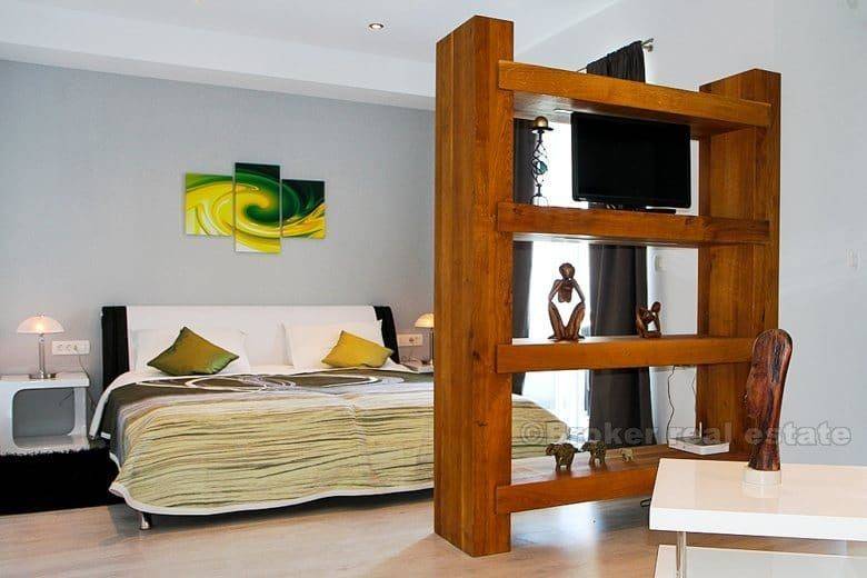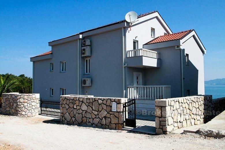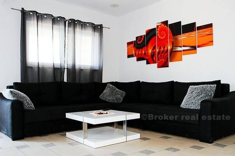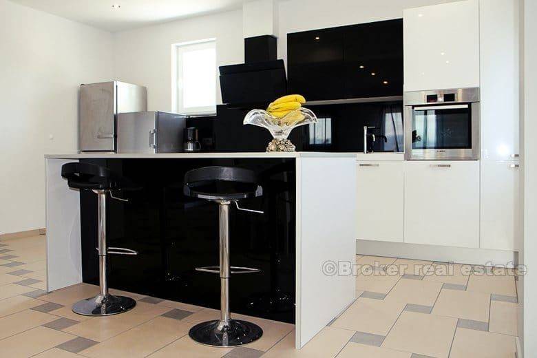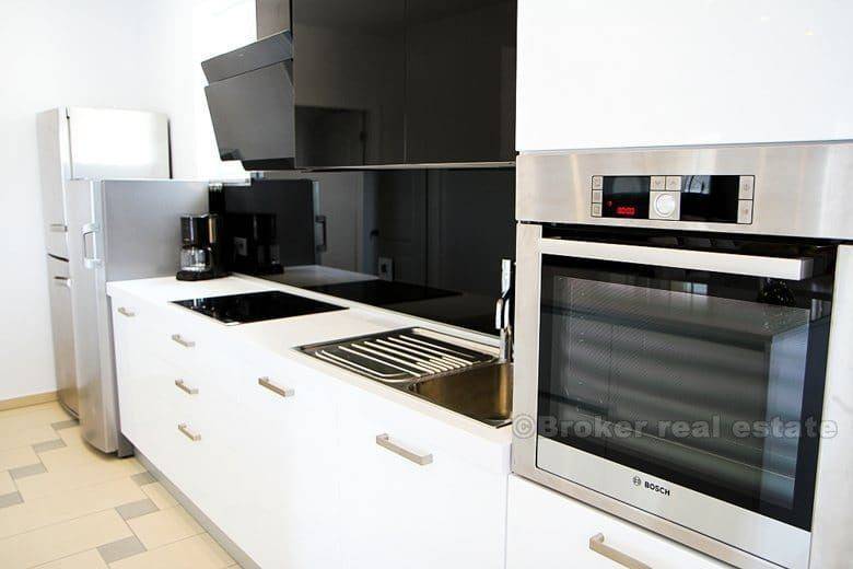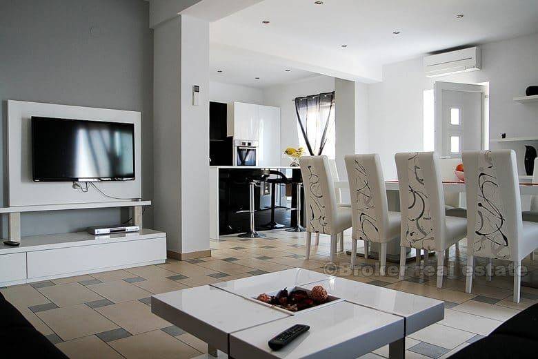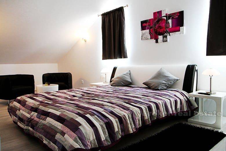 Area villa is 320m2 plus 1129m2 plot. Outdoor pool, barbecue, terrace, children playground with slide, house and sandbox. The villa has 6 bedrooms with a large double bed. 4 bedrooms have their own bathroom and two bedrooms in the attic share a communal bathroom. The ground floor has a fitness room with 3 devices, large living room, dining table for 12 people, a modern kitchen and extra large bathroom. Private parking.