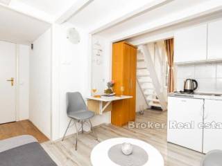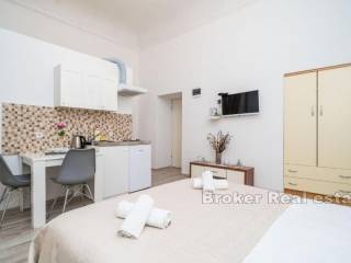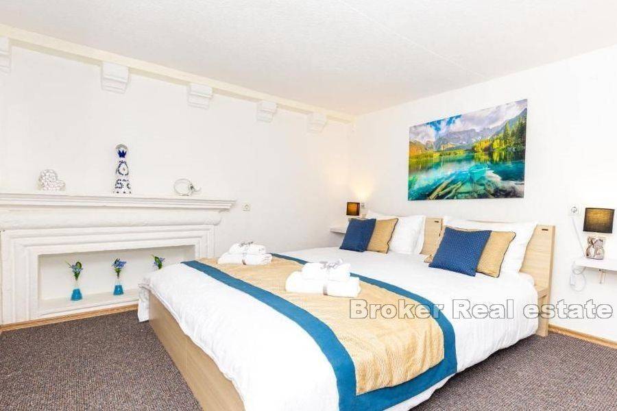 Four well-established apartments with office space, located in the very heart of the city of Dubrovnik. This unique property with a total living area of 115 m2 is located just a few meters from Stradun. The ground floor consists of an office space, a toilet and a basement. On the first floor there is an apartment of 78 m2 that has been converted into 4 apartment units, a large living room and a storage room. Two apartments are on two floors, in the lower part there is a kitchen, bathroom and living room, and on the first floor is a bedroom. The other two apartments are studio apartments with their own bathrooms and kitchens. The apartments are fully furnished and equipped and are being sold as such. The last renovation was in 2018 and the apartments have excellent occupancy throughout the year. The distance from the airport is 15 km.