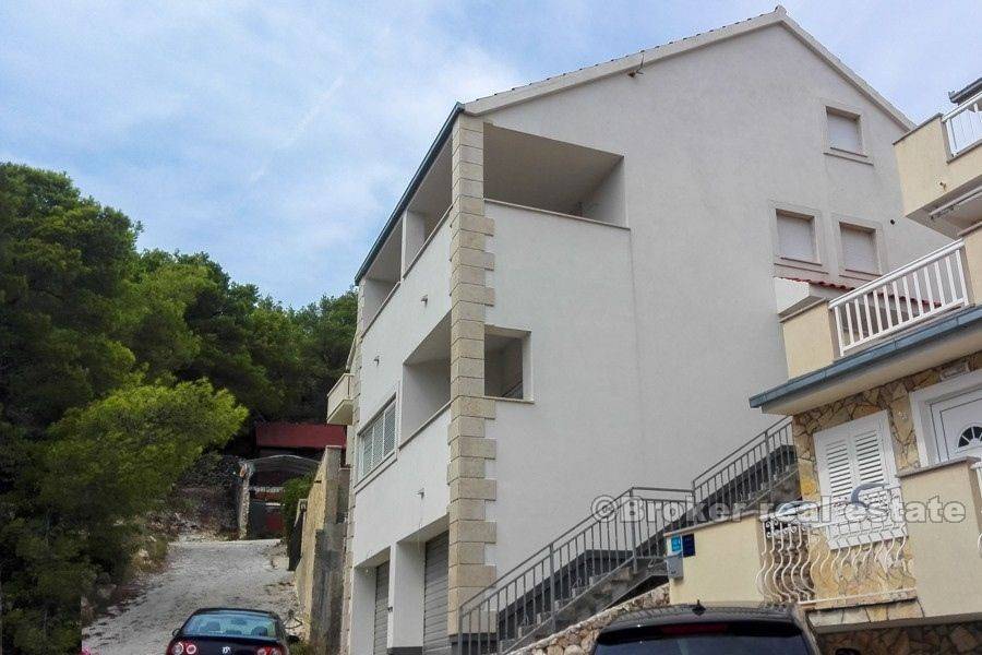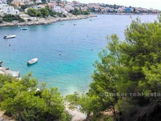 Beautiful detached family house first row to the sea and pebble beach. The property is located in a quiet bay, oasis of peace, ideal for a pleasant family vacation. The house, besides the large garage that extends almost throughout the basement floor, has three more floors, one of which is completely decorated and converted into a two-bedroom comfortable apartment while the other two floors in the roh-bau version give the new owner the option of their own desire to decorate interior interiors. Each of the living quarters has its own large loggia from which is a beautiful view of the bay. In addition to the large terraces in the south, overlooking the sea and the pine woods, from the north side of the house there is a predetermined place to enjoy the hot, lazy months where there is a large covered area, a barbecue and a space for the Jacuzzi.