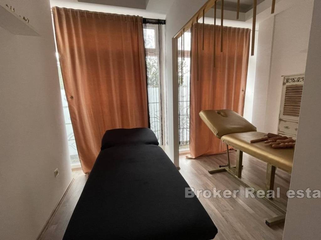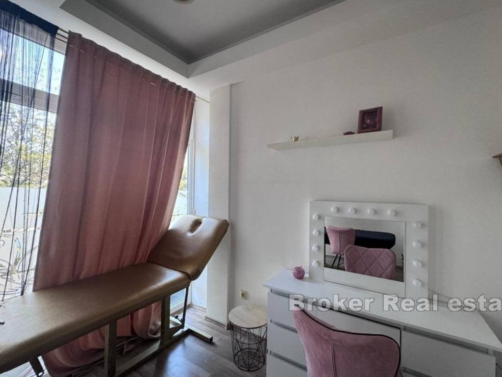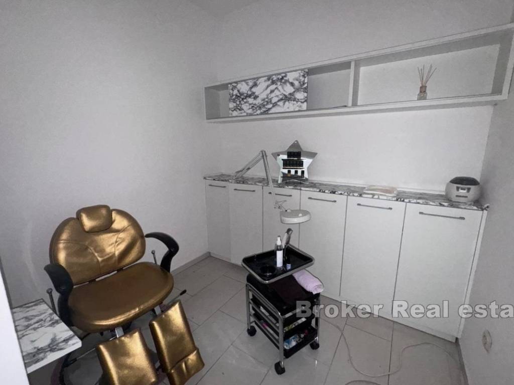Modernly decorated and fully furnished office space, located near the Joker shopping center, and is only 3 kilometers away from the city center. It is located on the ground floor of a residential building with a total area of 52m2. It consists of 3 separate rooms and one bathroom, the space is modernly decorated, has underfloor heating and has access by car from two sides of the building. The space is currently rented in the beauty salon.  Considering the location, arranged and adequate access from two sides, modern interior and the availability of a large parking lot nearby, this space stands out with its positive example of entrepreneurial investment in its own space, located in a quiet yet highly urban location.