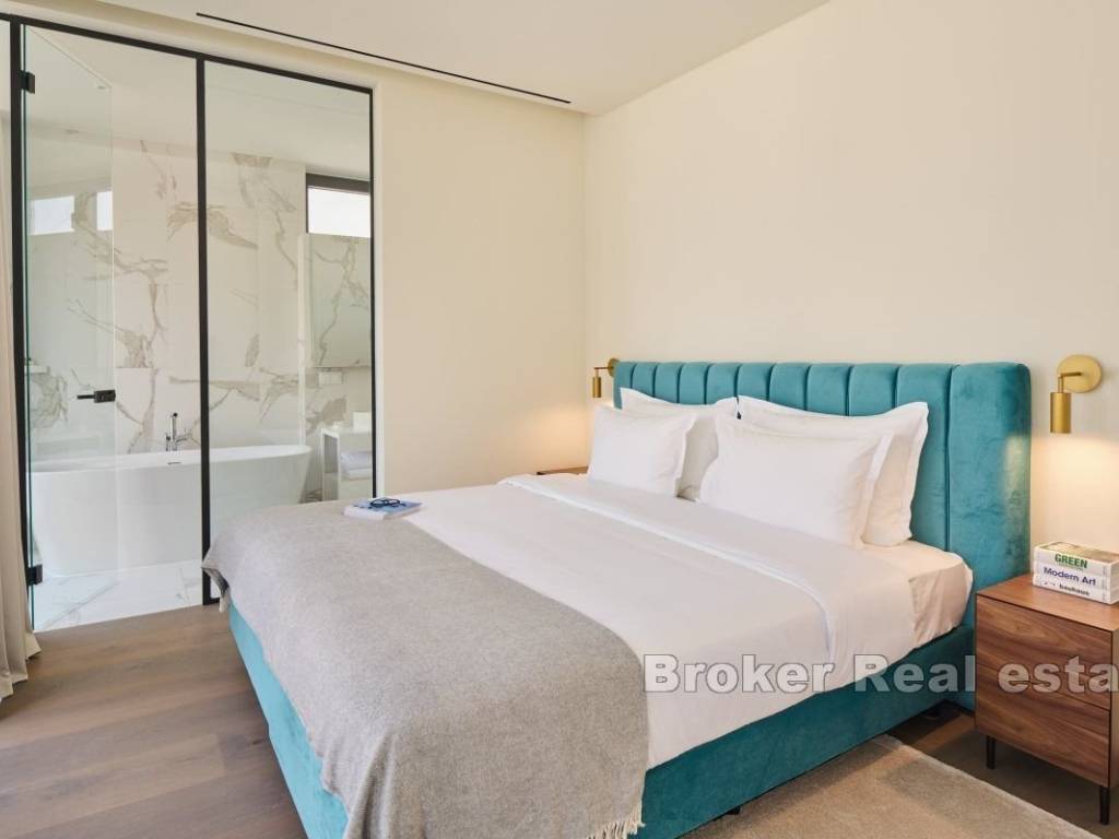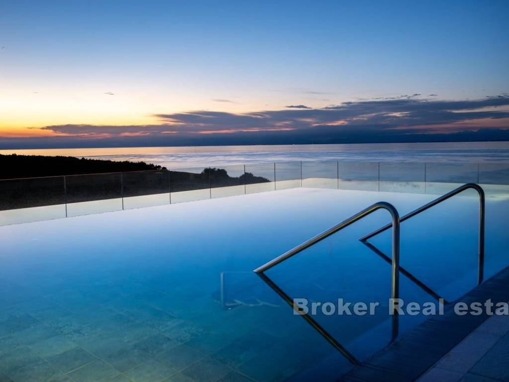A prestigious villa located within a luxury resort, spread over five floors, is located in Savudrija, Istria. The property has a living area of 423,20m2 with two additional balconies totaling 42,98m2 and a beautiful roof terrace with a swimming pool with an extraordinary view, measuring 62,40m2 and an additional 29m2 of a beautiful swimming pool. For an additional sense of luxury, an elevator is provided.   The propery extands over five floors and consists of a basement, a basement area, a ground floor, the first floor and the second floor. The basement is provided for a laundry room, a technical room, a bathroom, a wine cellar and a playroom that offers a wide range of products. The basement area of the property is also reserved for a playroom, a bathroom, a living room and a room for pool equipment. The stairs lead to the ground floor of the property, which is connected to the entrance hall and leads to three beautiful bedrooms, each with its own bathroom, a laundry room and a techincal room. Also two bedrooms have direct access to the balcony. The first floor of this prestigious villa is reserved for the bedroom with its own bathroom, and an open space where the kitchen, dining room and living room are located, as well as an additional toilet. While the second floor, which is also the top floor of the villa is rerved for enjpyment. On the top floor of the villa there is a toilet, a terrace that is partially covered, and a spacious swimming pool with a view of the sea.   The villas in this resort are distinguished by luxurious design, while the selection of materials has significantly contributed to additional luxury. All villas have flawless use of the resort’s services.   For each villa, you can choose a decoration package, while VAT is not included in the price.