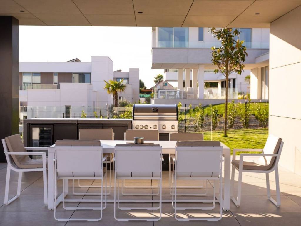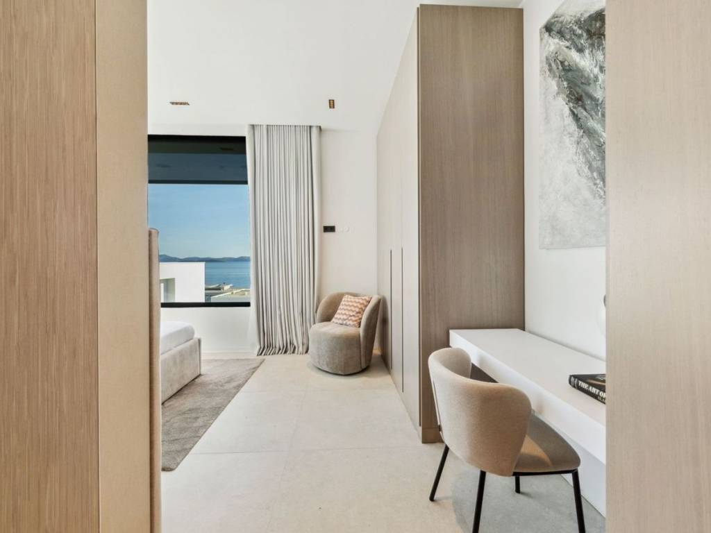 Nestled within the prestigious private Resort, on the breathtaking Ugljan Island, this magnificent villa offers the ultimate blend of luxury, privacy, and seaside serenity. Finalized and opened in the summer of 2024, Resort is a gated, coastal community featuring 21 exclusive private villas and the world-class Beach Club, which includes a 24/7 front desk, restaurant, bar, and two community pools. Architectural excellence and premium craftsmanship Designed by renowned visionaries Carlos Lamas and Interiorisimo, the villa is a masterpiece of contemporary design, constructed with top-tier materials and exceptional attention to detail. Boasting 218 m2 of living space, this home also features two expansive terraces spanning a combined 237 m2, all situated on a private 905 m2 plot. Impeccable indoor-outdoor living Large floor-to-ceiling windows fill the interior with natural light, seamlessly merging the modern kitchen and living areas with the stunning ground-floor terrace. Perfect for both relaxation and entertaining, the villa’s courtyard includes a private heated swimming pool, a lush garden, a summer kitchen, a two convenient outdoor parking spaces. Each spacious bedroom features a built-in closet and an en-suite bathroom, ensuring comfort and privacy for every guest. Unparalleled location Situated just steps from the crystal-clear Adriatic Sea, this villa offers direct access to the coast, making it an idyllic retreat for vacationers or an exceptional investment for tourism purposes. As part of the community, you’ll enjoy the perfect balance of seclusion and convenience, with all essential amenities close at hand. Set against the backdrop of Dalmatia’s most desirable locations, this villa represents an extraordinary opportunity to own a piece of paradise.