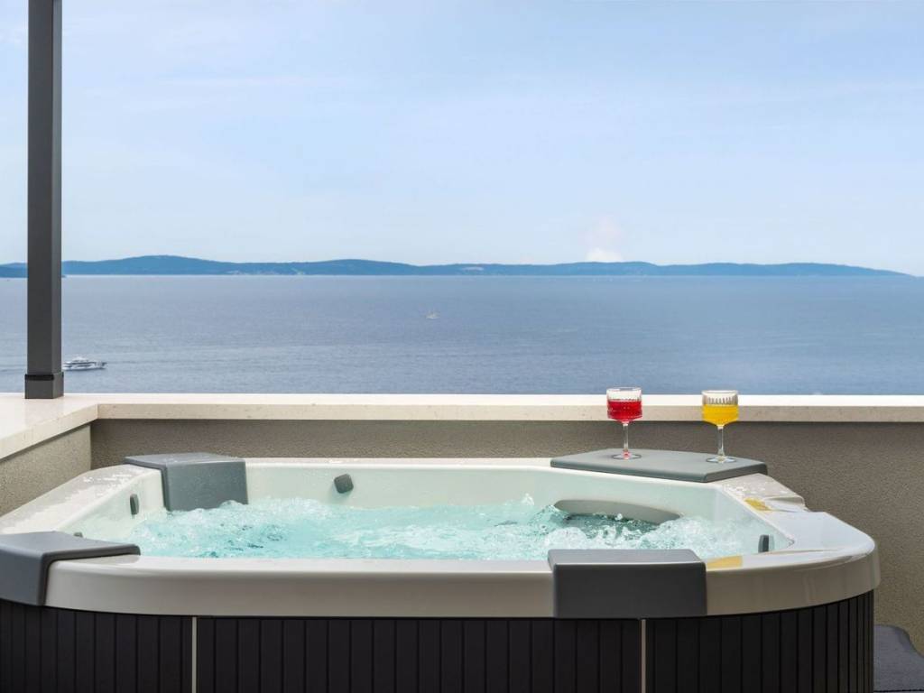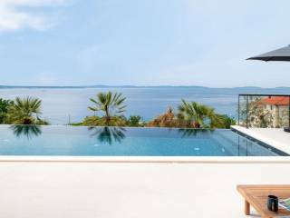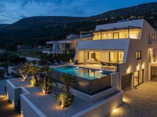 Within an exceptional complex of newly built villas in a settlement near the city of Split, we offer for sale a villa with a swimming pool with a total living area of 320m2, and is located on a plot of land of 600m2 with a cultivated garden with automatic irrigation and parking for several cars. The villa extends over three floors and has several loggias and terraces from which there is an enchanting view of the sea and the islands. In the basement there is an area for entertainment, i.e. billiards, a wellness room, an additional bathroom for extra comfort, an engine room and a garage. An internal staircase leads to the ground floor, which consists of an open space that unites the kitchen, living room and dining room, two bedrooms, one of which has its own bathroom, and an additional bathroom. Going out to a beautiful terrace with an overflowing pool and a beautiful view of the sea and nearby islands. On the first floor, there is a spacious entrance hall, two additional bedrooms with their own bathrooms, and a roof terrace with outdoor furniture for sitting and socializing, as well as a jacuzzi. The view from this floor does not need to be commented too much, all that needs to be said is that it leaves you breathless. The distance from the sea is 300 meters, as are the nearby beaches, while the city of Split is located at a distance of approx. 12 km.