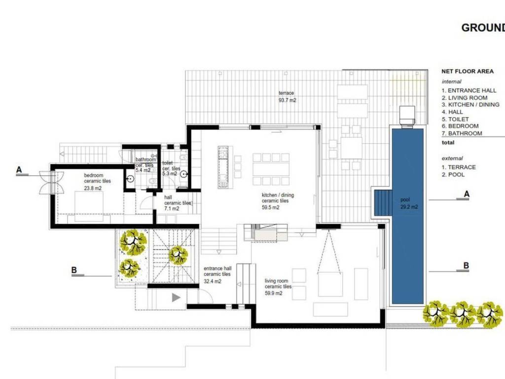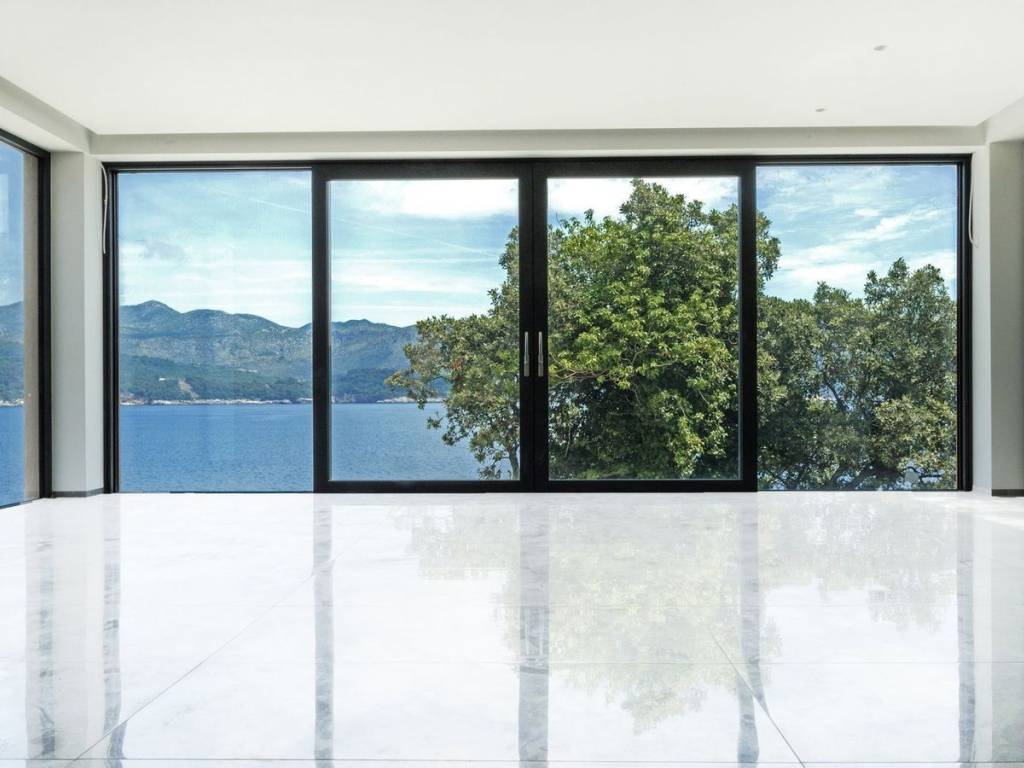 For sale is a modern semi-detached villa with a total living area of 370 m2 near Dubrovnik, built on a plot of land of 3000 m2. The villa consists of two floors and was built in 2018. On the first floor of the total living area of 194 m2, there is a toilet, a bedroom with a bathroom, a kitchen with a dining room and a spacious living room with an exit to the terrace with a magnificent open view of the sea. On the spacious terrace of 94 m2 with outdoor furniture, there is a swimming pool of 30 m2. On the second floor, with a total living area of 109 m2, there are three bedrooms, each with its own bathroom. Two bedrooms have access to terraces of approx. 33 m2. The design of the villa is such that almost every room offers a unique panoramic view of the sea. The distance from the center of Dubrovnik is 7 km by air. This is an exceptional opportunity in the market that is worth considering.