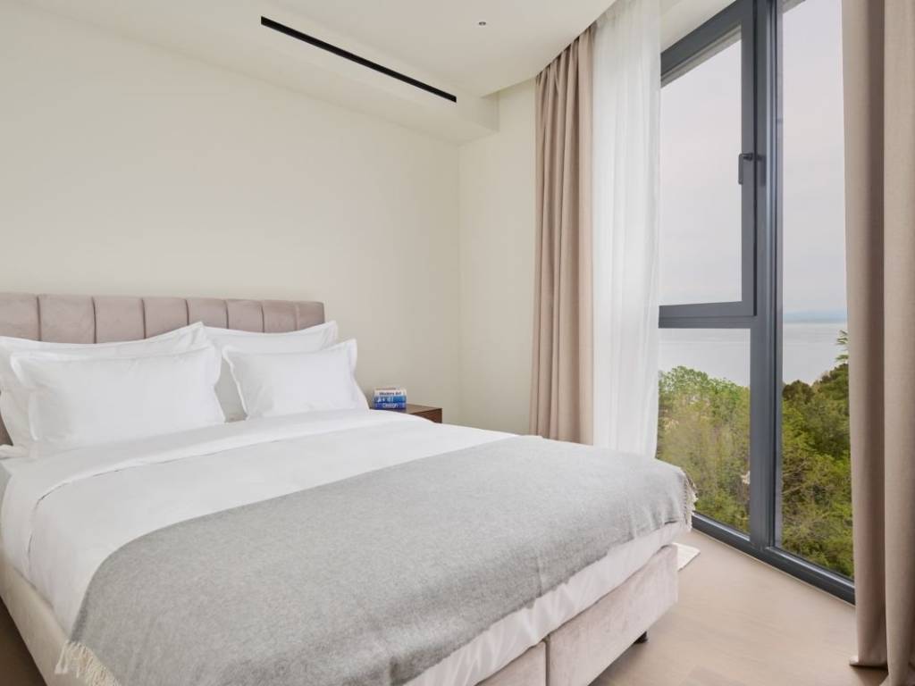 A beautiful two-bedroom apartment is for sale in a modern new building located in a prestigious resort located in the beautiful Savudrija, Istria. The living area of the apartment is 75,60m2 with a spacious terrace of 20m2 and a beautiful garden of 188,80m2. The apartment is located on the ground floor of a mall residential building and is oriented to the southeast.   The apartment consists of an entrance hall that leads to two beautiful bedrooms, each with its own bathroom, and an open space where the kitchen, dining room and living room are located, and an additional toilet. The living room has direct access to a beautiful terrace and garden.   The apartments in this modern residential building are characterized by contemporary designs, the highest quality materials, with attention paid to every detail, which contributes to additional luxury.All apartments have flawless use of the resort’s services.   For each apartment, you can choose a decoration package and a parking space, while VAT is not included in the price.   There are also two-room apartments in residential building in the resort under the codes: ID: 2046/47, ID: 2046/51   While three-bedroom apartments in residential building are located under the codes: ID: 2046/48, ID: 2046/50