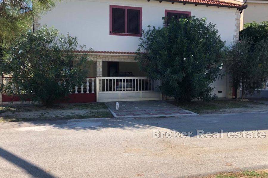 For sale is a detached house with a total living area of 220 m2 near Zadar, built on a plot of land of 426 m2. It consists of two floors where there are two apartments. The larger two-story apartment consists of three bedrooms and a bathroom. Behind the house there is a smaller apartment consisting of two bedrooms and a bathroom. The wonderful panoramic view from the terrace is the reason why you will easily decide to buy this house. The house offers an outdoor grill, and the property itself is designed in such a way that there is plenty of daylight on both floors. The house has 3 covered parking spaces and a garage. The distance from the center of Zadar is 5.5 km by air. Facilities such as shops, restaurants, etc. are nearby. The excellent location of the house opens up various possibilities that can be used, either for tourist rental or summer vacation.