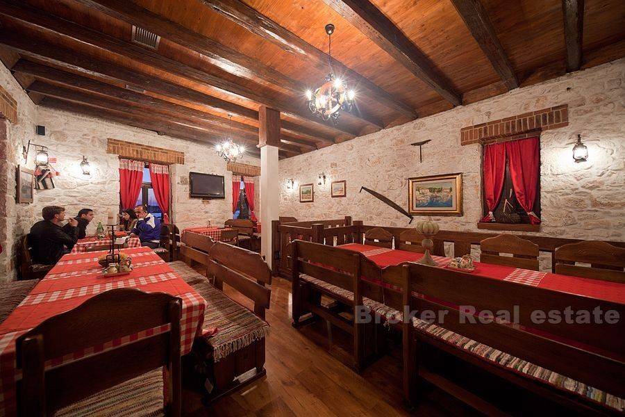 Beautiful stone house for sale, located in a prime position, on the waterfront of a popular tourist destination in central Dalmatia, with a total area of 277 m2. The house consists of a ground floor (127m2), first (75m2) and second floor (75m2), and each floor has its own spacious terrace with a view of the sea. The house is currently designed as a traditional restaurant on two floors, while on the top floor there is a decorated two-room apartment with a beautiful terrace, ideal for carefree enjoyment. The interior of the house retains the traditional Dalmatian style of decoration, i.e., a combination of stone and wood, so that the entire space exudes a special old-fashioned atmosphere, to which visitors especially react and which they sincerely enjoy. During the colder months, the house has the option of using a large wood-burning fireplace, the size of which is sufficient to heat the entire lower floor, where the living room and reception rooms, the kitchen and the dining room would be located, while the upper floors would be reserved for bedrooms (if the future owner gave up his catering business and arranged the house exclusively as a residential unit). A very interesting offer considering the various possibilities and potential that the position itself carries. Certainly, it is important to note that the house has been completely renovated, that during the renovation, the domicile’s quality natural materials were used, and that care was taken to ensure that every detail was integrated with the whole idea of Dalmatian romance. Considering the current condition and development potential of the place where it is located, this property represents a quality investment that will always retain its special charm and beauty. In addition to this property, it is also possible to buy a completely renovated stone house on three floors, with a total living area of 185 m2, which you can view in more detail under reference number 2016/516, and which is located in the immediate vicinity of this property.