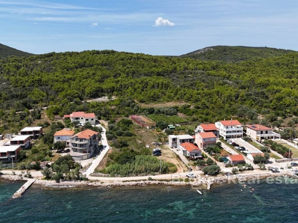 Land for sale in the construction zone of the settlement in the first row to the sea on the island of Pašman, spacious square footage 1758 m2 with direct acess to the beach. With all infrastructure available, there is the possibility of building a family house or a smaller building with apartments.
