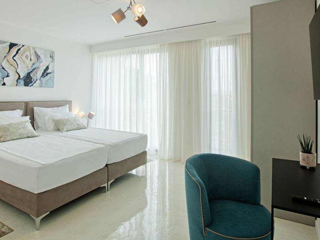 A luxurious, newly built villa with a living area of 250 m2 is located in the vicinity of Šibenik on a plot of land measuring 915 m2. The villa has a private entrance and is located in a quiet street, so there is no disturbance from neighboring properties or traffic. With the use of rich materials during construction and paying attention to details, an uncompromising real estate concept was created. The grounds of the villa consist of outdoor covered and uncovered parking for three cars, heated swimming pool and outdoor shower, sunbathing area, garden, barbecue and dining room covered with an automated pergola. The property extends over two floors. On the ground floor, next to the entrance to the house, there is a kitchen and dining room, a living room, a cinema room and a fitness room, as well as a bathroom. There are high glass walls along the length of the entire floor, and all rooms offer access to the outdoor terrace. An internal staircase leads to the upper floor, which consists of four bedrooms, each with its own bathroom and private balcony. The entire villa is equipped with an electric smart system for lowering and raising the blinds, ducted air conditioners, an alarm system, underfloor heating along the entire length of the villa with separate regulation in each room. As part of the ground floor, there is also a technical room as a separate room. The property is located only 550 meters from the sea and is close to supermarkets, restaurants and cafes. The villa is perfectly designed for both vacation and permanent residence.
