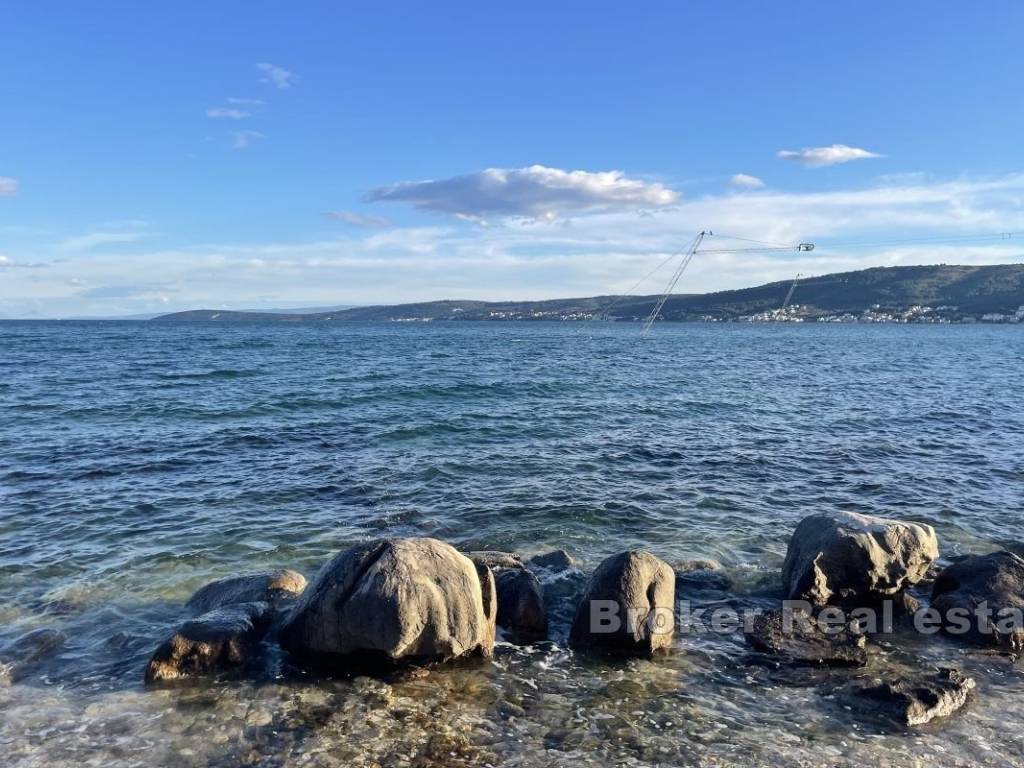 Building plot in the first row to the sea, only 5 meters from the sea, for sale. The land is rectangular in shape and is located in Kaštela. The size of the land is 3973 m², and it is mostly located in the M5 zone, and a smaller part in the R3 zone. There is a secluded beach in front of the property. There is a public access road behind the plot. All necessary infrastructure is located in the immediate vicinity of the land.