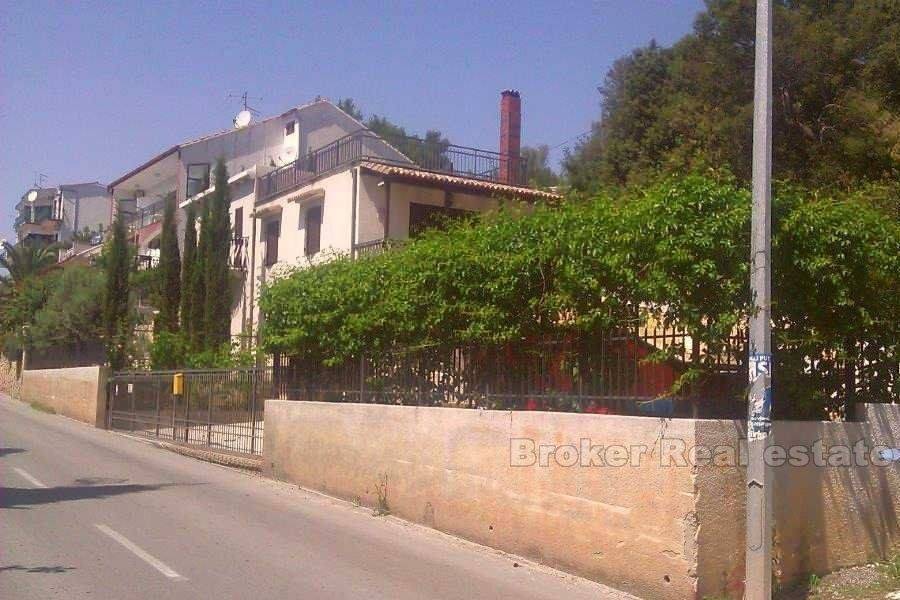 The detached house is located on the island of Ciovo. It was built on a plot of 450 m2, the usable net area of the house is 150 m2. It consists of the ground floor of this first floor. On the ground floor there are two garages. On the first floor there is a three bedroom comfortable apartment with a living space of 114 m2. It consists of entrance hall, hallway, kitchen with dining room, living room, bathroom, three bedrooms, toilet and three balconies. There is the option to upgrade.