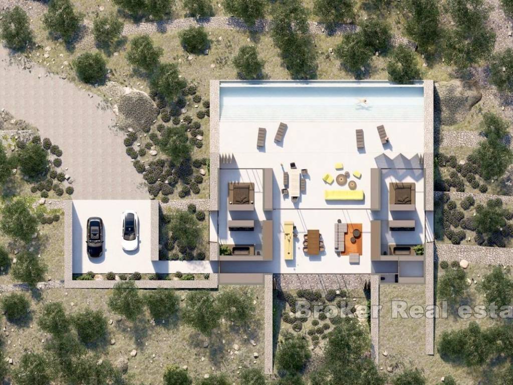 Agricultural land with development and construction project located on the south side of the island of Korčula, 850m from the sea. The land is suitable for growing vines and olives and is divided into two plots. The first plot has an area of 31,681 m2, is located 30 m from the asphalt, has 60 olive trees, the age of the olive trees is from 20 to 25 years. The second plot has an area of 31,729 m2, is located 70 m from the asphalt and has 60 olive trees, the age of the olive trees is from 20 to 25 years. The land offers the possibility of building real estate with a construction (gross) area of above-ground parts up to 400 m², a maximum height of up to 5 m and/or a fully buried basement with a construction (gross) area of up to 1000 m² for the needs of a registered family farm and the provision of catering and tourist services in a peasant household, a trade registered for the practice of agriculture or a legal entity registered for the practice of agriculture. An attractive offer is the possibilities offered by the land, such as the cultivation of olives and the production of olive oil, which has an 18% ratio between the fruits and yields kilograms of olive oil, as well as the possibility of tourism business of the property, for vacations, events, congresses, film productions, etc. Selling price of olive the oil used in the calculation is 10 euros per liter, while the real estate price is 500 euros per day as the highest amount of daily rent in the peak of the tourist season. Plots are sold together or separately.