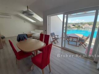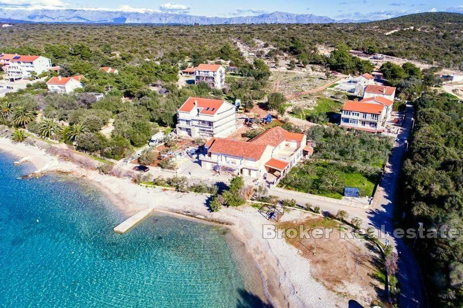 Apartment building, for sale, located in the first row by the sea in a beautiful bay on the west side of the Peljesac peninsula, on a plot of 824 m2, total living area of 452 m2. The building consists of ground floor, first floor and attic, ie, 5 apartment units (2×75 m2; 2x55m2 and penthouse apartment of 150 m2). The building has two approaches, one is towards the sea and other is by the road behind the building where each apartment has its own parking space. A very interesting opportunity for business investment in this part of the coast, given the beautiful environment in which the property is located, high quality construction and the capacity that the building offers.