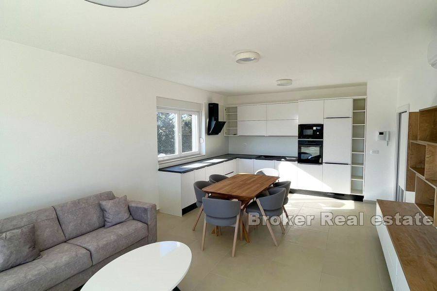 Apartments for sale on the island of Ugljan, only 150 meters from the sea. Apartment A2 with a usable living area of 65 m2 consists of two bedrooms, a kitchen and dining room, a living room, and two bathrooms. Apartments are provided fully equipped, with all furniture and small inventory. The price of all apartments includes a storage room of 13 m2 and a parking space in the garage. The apartments make a top offer precisely because of their quiet and connected location, proximity to the sea, the city center and therefore all the necessary facilities for living, vacationing or commercial use. Available apartments in building A are: Apartment A1 on the ground floor: 144 m2 with terrace and garden – 407 314 € Apartment A2 on the ground floor: 100 m2 with terrace and garden – €311,821 Available apartments in building B are: Apartment B2 on the ground floor: 100 m2 with terrace and garden – €311,821 The listed prices do not include VAT – and they increase at the rate of 25%.