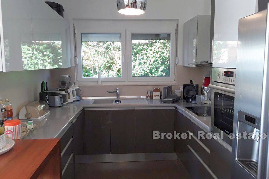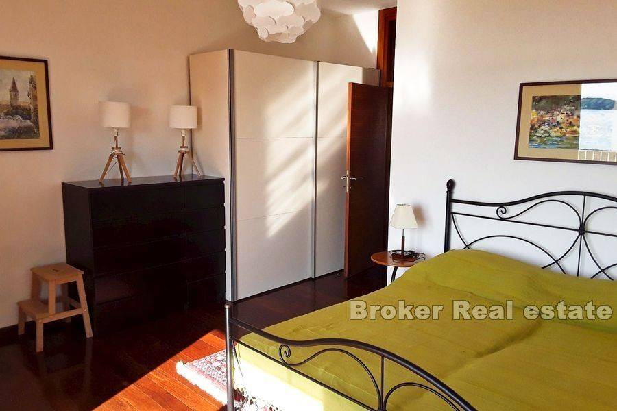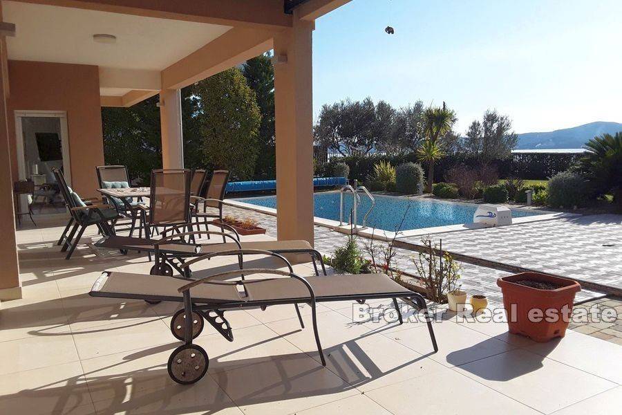 In a unique location, built on 950m2 building land, it spreads over two floors: – On the ground floor there is a large, sunny, spacious living room with kitchen and dining area, two bedrooms, guest toilet, bathroom and laundry. – Upstairs there are 3 bedrooms, two bathrooms and another space provided as a fitness room or sauna. The whole garden was converted into a cultivated garden equipped with automatic irrigation. On the spacious yard there is a large pool of 50m2 with associated sundeck, and in its back there is a large parking space. The villa is fully equipped, the heating and cooling of the facility is via “heat pumps”, it also has central heating with electricity and the possibility of heating with wood. The excellent micro-location of the villa enables it to quickly communicate with the first major center – the city of Zadar (5 km) and the airport “Zemunik” (6 km).