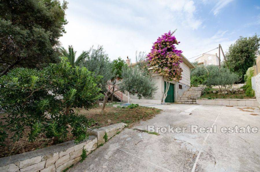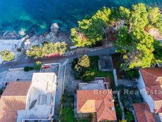 Detached house, built in stone, on a plot of 900 m2. Upstairs is a two bedroom apartment with living room and kitchen and bathroom, and a terrace of 50 m2. On the ground floor is a two bedroom apartment, measuring 50 m2, and recently renovated. On the land there is a garage of 35 m2, and storage. In front of the house is a road – promenade, and in the sea is a corpo morto. The plot of 900 m2 is divisible, and there is a possibility of renovating the existing building and building a new building to the other half of the land.