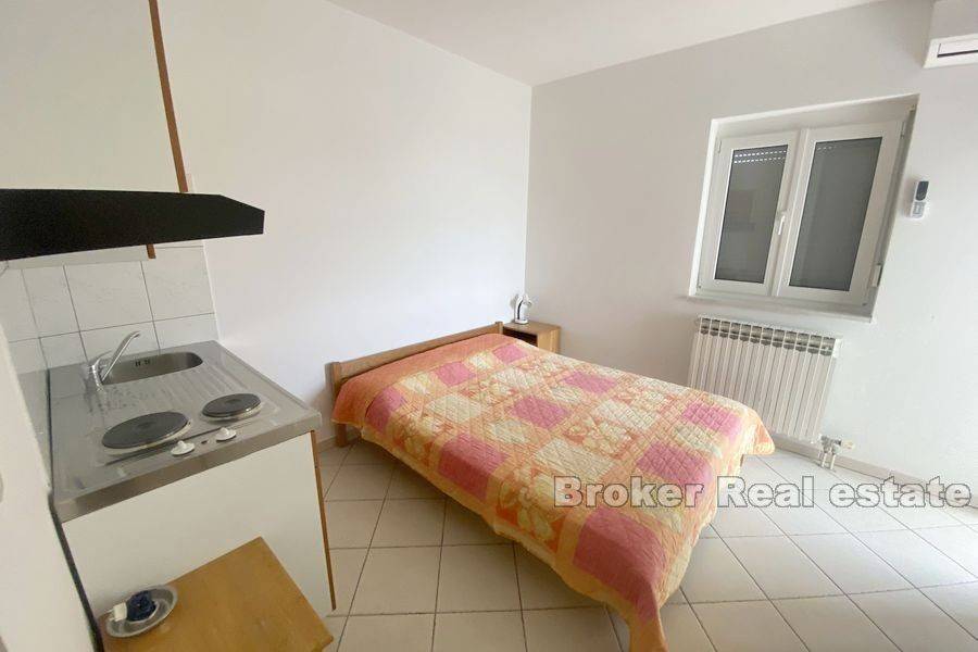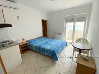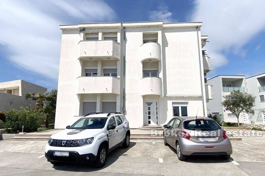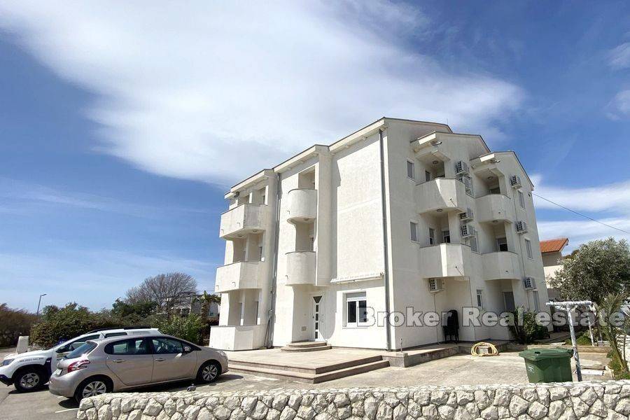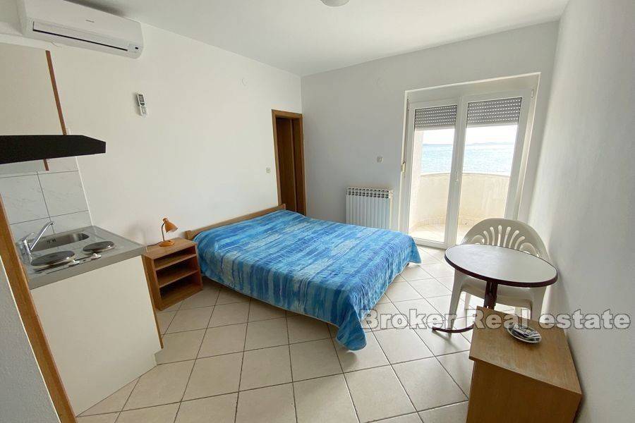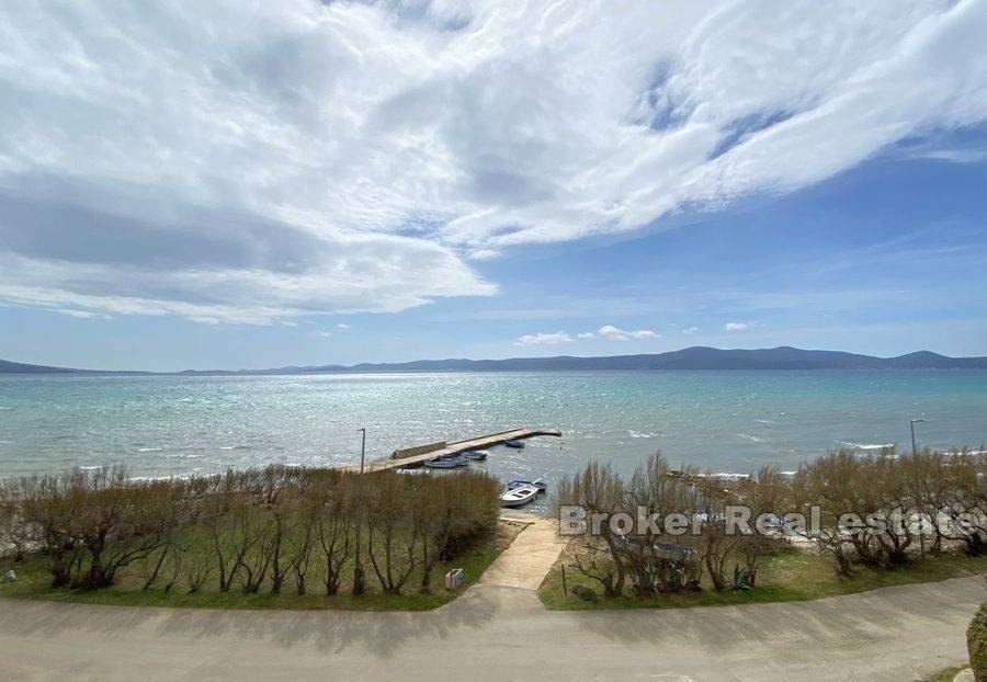 Apartment house in an exceptional location first row to the sea. Apartment house for sale in a small town near Zadar with 12 apartments. Each apartment has a balcony and a perfect view of the sea and the beach, which are only 10 meters away from the property. The apartments are separated by a common staircase and each has a separate entrance. They consist of a kitchen, bedroom, dining room and bathroom. Larger apartments have two bathrooms and smaller ones one. The house was built as a whole in 2001 and since then it has been invested in from year to year and kept immaculately clean. The property has been used for tourism purposes with great success and top reviews every year. In front of the house there are 6 parking spaces included in the price, but right next to the property there is a public parking lot which is also available for use. Due to its preservation, the property can be used immediately and continue to be used for tourist purposes.
