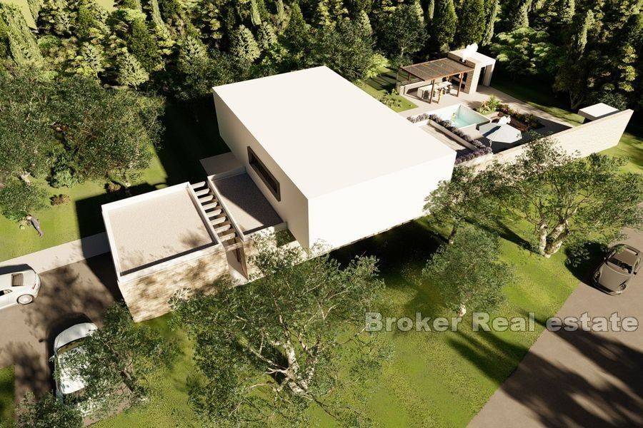 In the olive grove there is a luxury villa under construction on the island of Šolta. The design is a blend of Mediterranean and modern style. It consists of 320 m2 of living space over 2 floors. The ground floor has a living room, dining room, kitchen, toilet and pantry. On the first floor there are 3 bedrooms, study, dressing room, 3 bathrooms and a large terrace with jacuzzi. The villa has the most modern underfloor heating and air conditioning system. The exterior consists of a swimming pool, sauna, summer kitchen with a small storage room and a toilet. The villa has two garages and 4 outdoor parking spaces. There are not many properties nearby so privacy is guaranteed. Good traffic connections with other places and the proximity of all tourist and other facilities located within 1 km are an advantage for tourist purposes but also for residential use.